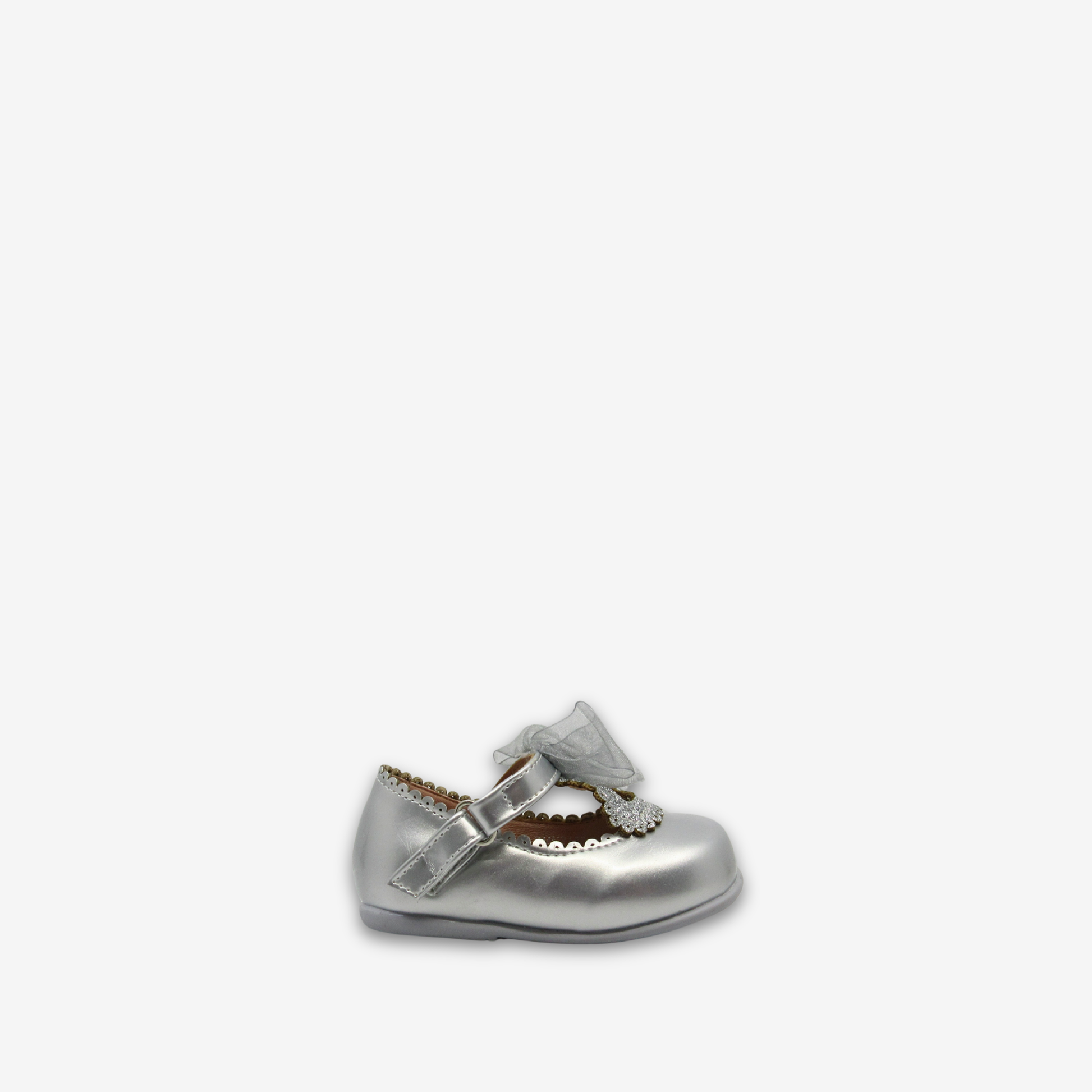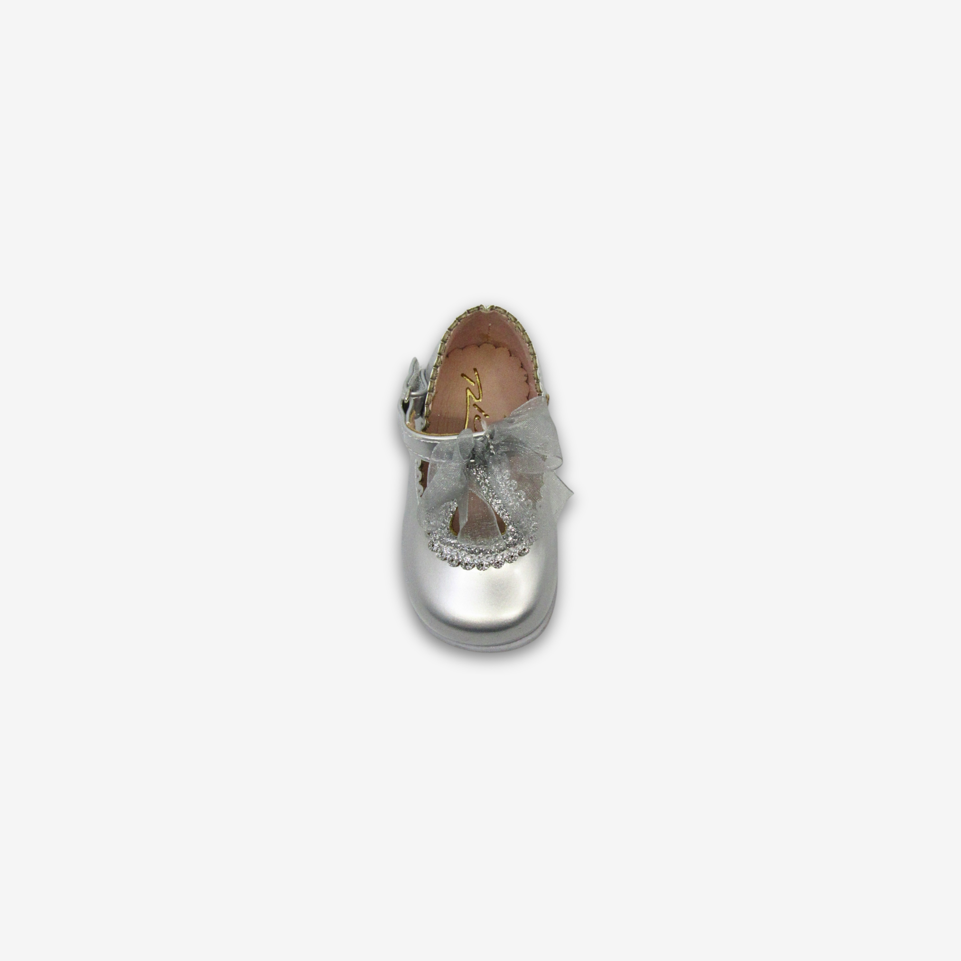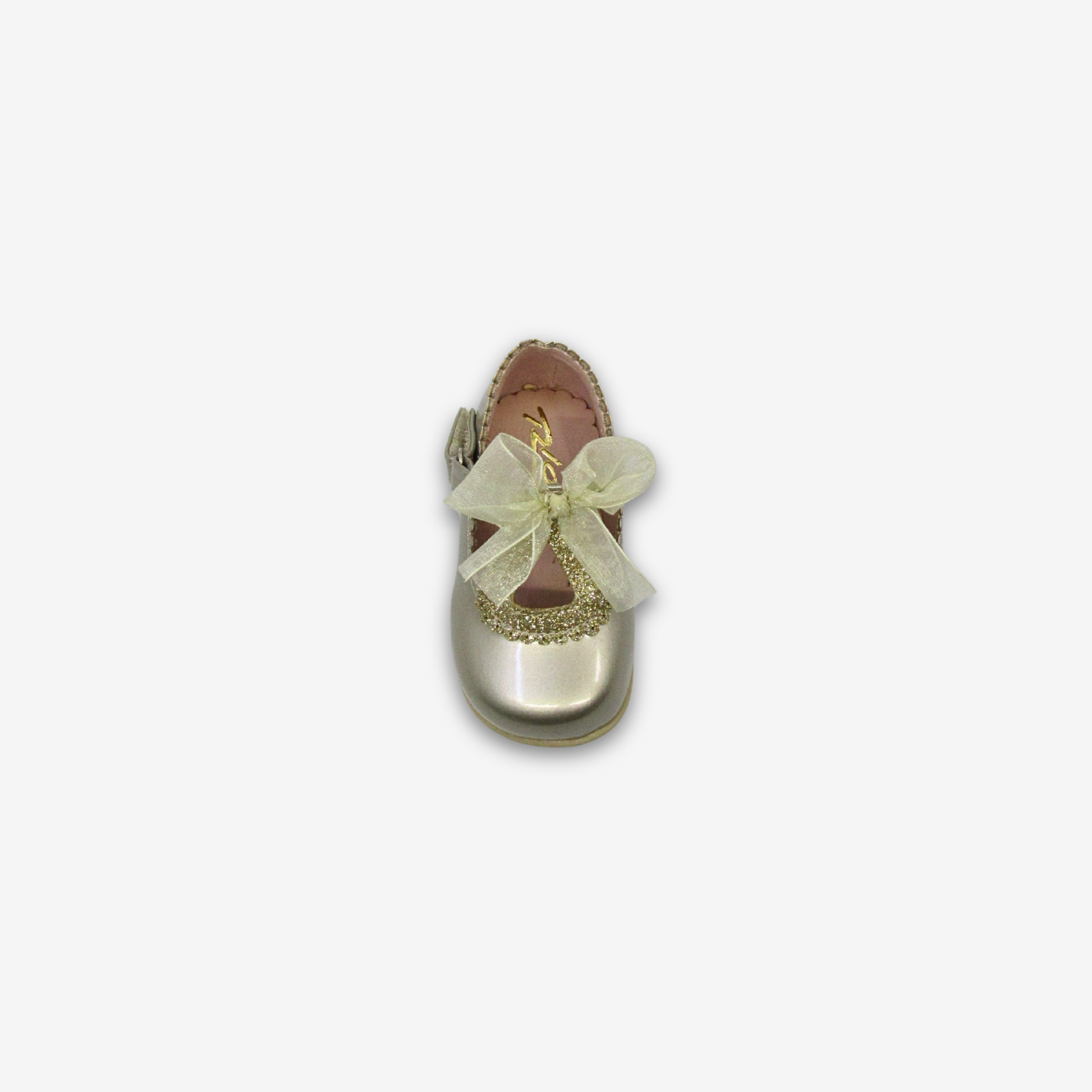 This RIO girl shoe is crafted to bring charm and comfort to formal occasions. Featuring a glossy finish with glitter trim and a delicate ribbon bow, it offers a graceful look perfect for celebrations. The strap across the top ensures a secure fit, while the soft inner lining provides gentle comfort for little feet. Designed with attention to detail, this shoe is ideal for events where style and ease matter most.