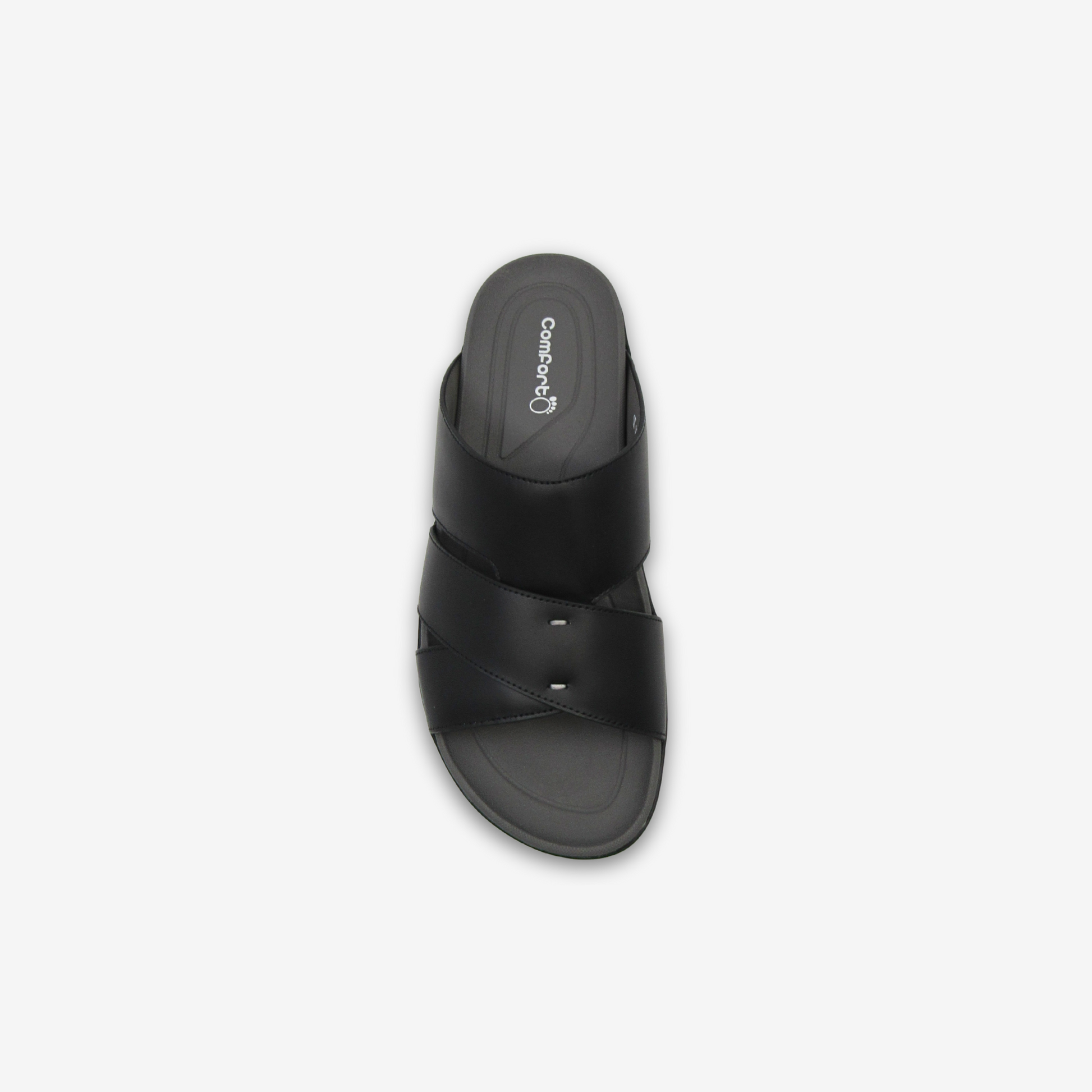 This COMFORTO men leather slipper is crafted for casual ease, combining simplicity with practical comfort. Featuring dual overlapping straps with subtle slit detailing, it offers both breathability and modern appeal. The slip-on construction ensures effortless wear, while the cushioned footbed and supportive sole provide lasting comfort for daily use. Perfect for relaxed outings, warm-weather days, or versatile everyday wear.