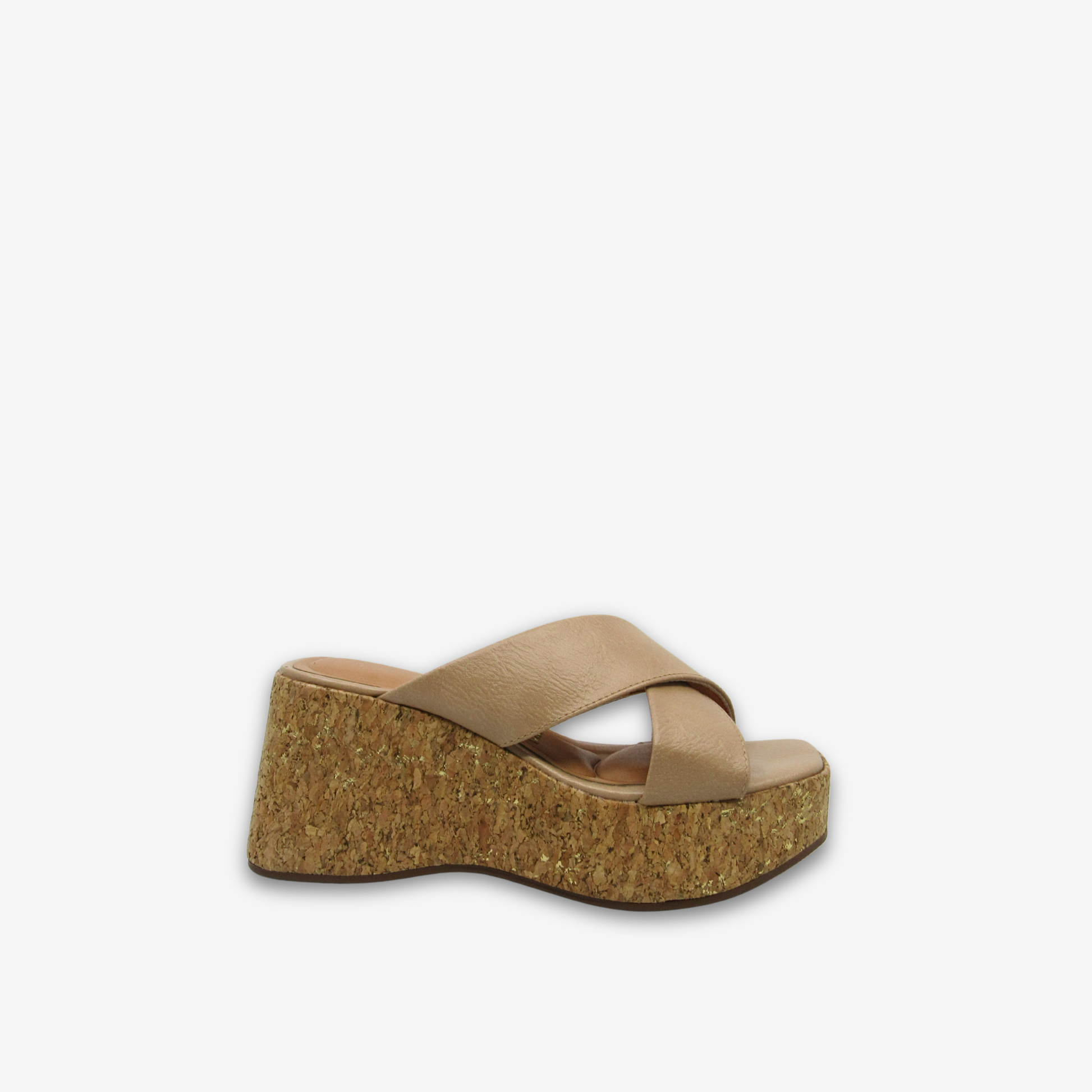 Slide into effortless style with this VIZZANO mid heel rocky slipper, designed for comfort and laid-back elegance. Featuring wide crisscross straps and a cork-textured wedge sole with subtle metallic accents, it offers a breezy silhouette with a touch of shine. The open-toe design and slip-on construction make it a go-to choice for warm-weather days.
