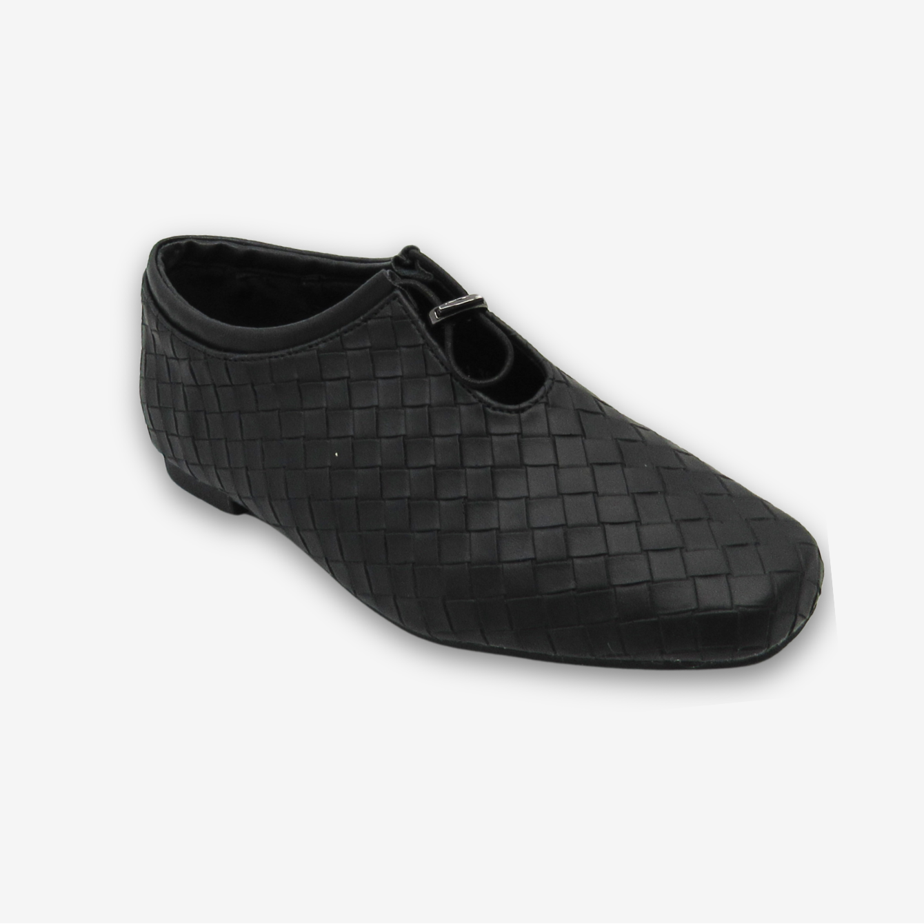 This RIO women flat shoe is designed to blend sophistication with practical comfort. Featuring a closed pointed toe and a woven textured upper, it delivers a refined look with artisanal detailing. A slim strap with a buckle accent adds both style and secure fit, while the cushioned insole ensures lasting comfort. Perfect for formal, festive, or semi-formal occasions, this shoe combines timeless elegance with versatile wearability.
