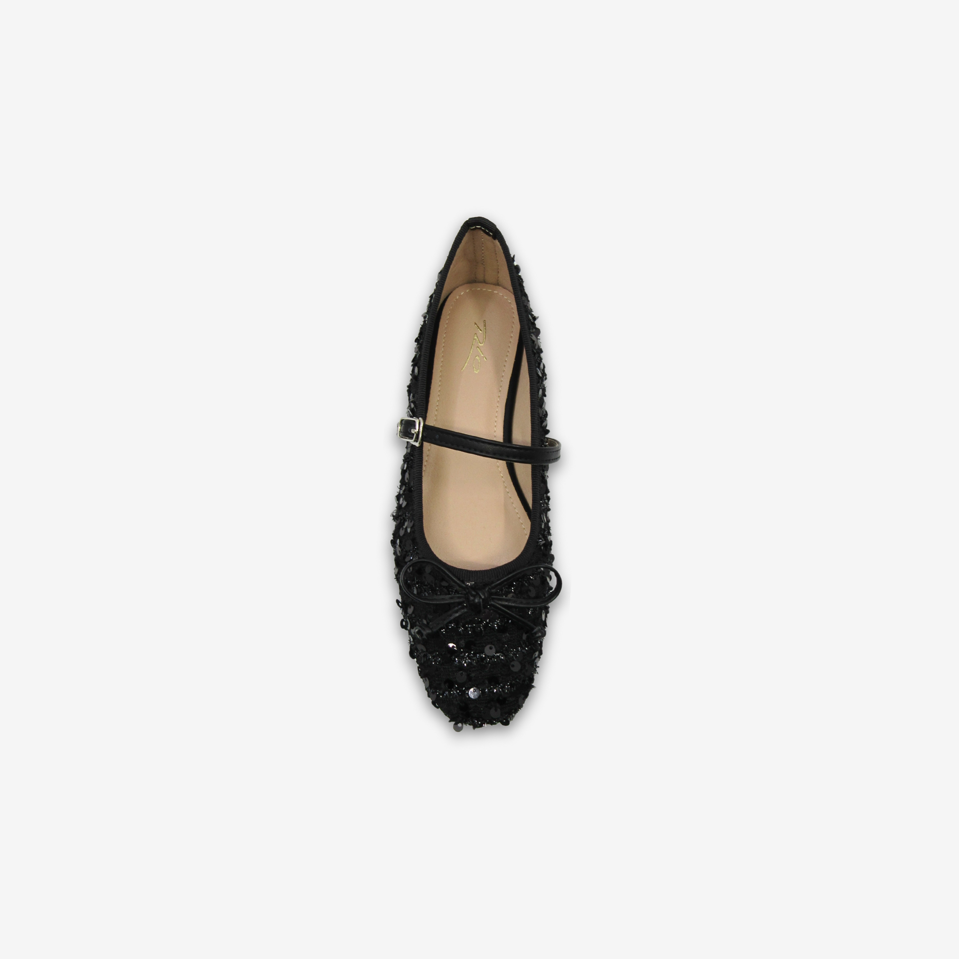 This RIO women flat shoe is designed to bring a touch of glamour to everyday wear. Featuring a rounded toe silhouette and a decorative strap across the instep, it combines classic charm with modern detailing. A bow accent at the front adds playful elegance, while sequins and textured patterns create a sparkling finish. The cushioned insole ensures comfort, making it perfect for casual outings or semi-formal occasions.