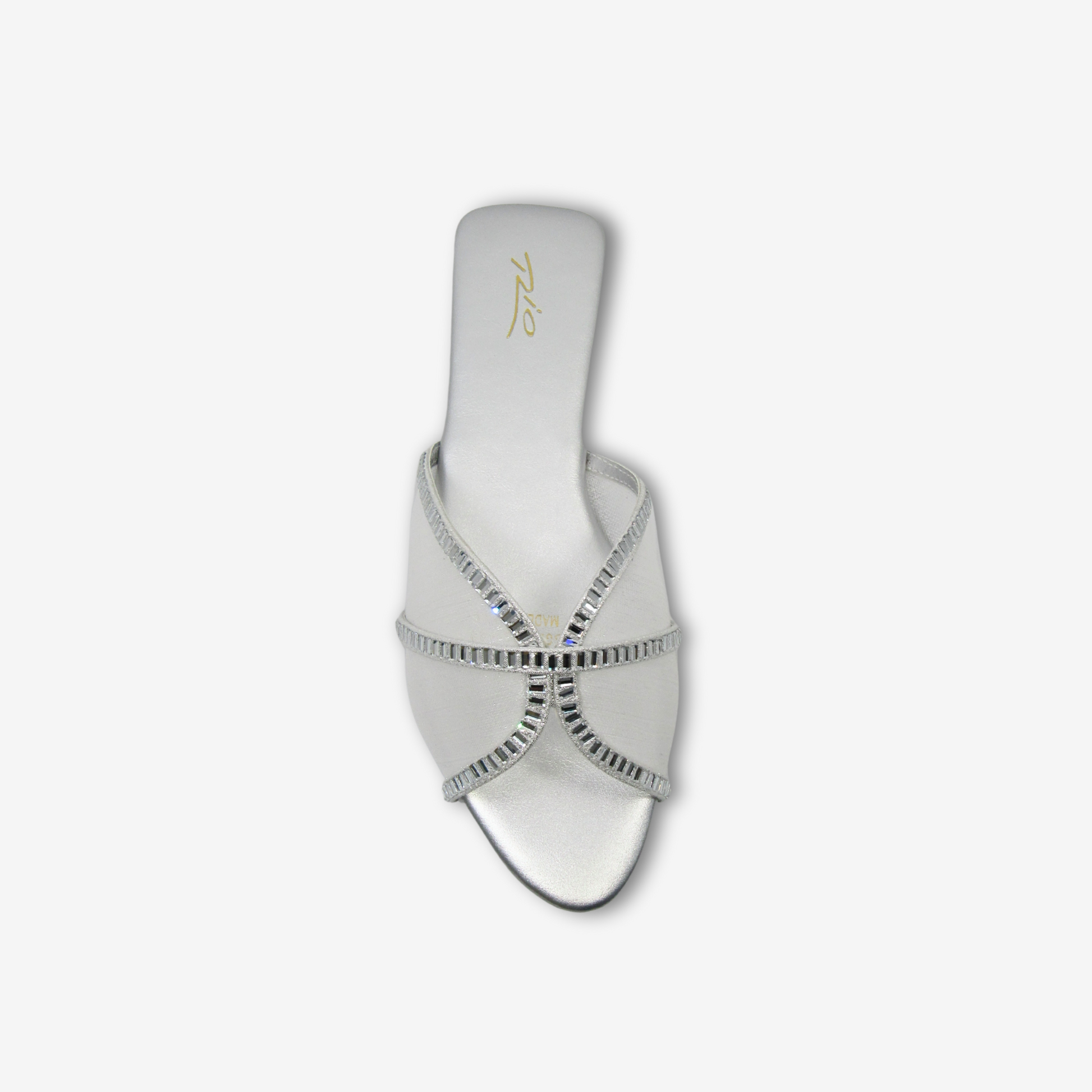 Elevate your everyday look with this RIO women’s slipper, designed to dazzle with ease. The crisscross strap is adorned with radiant embellishments, adding a refined sparkle to your step. A cushioned footbed and sleek silhouette ensure comfort meets style, making it perfect for casual outings or festive occasions.