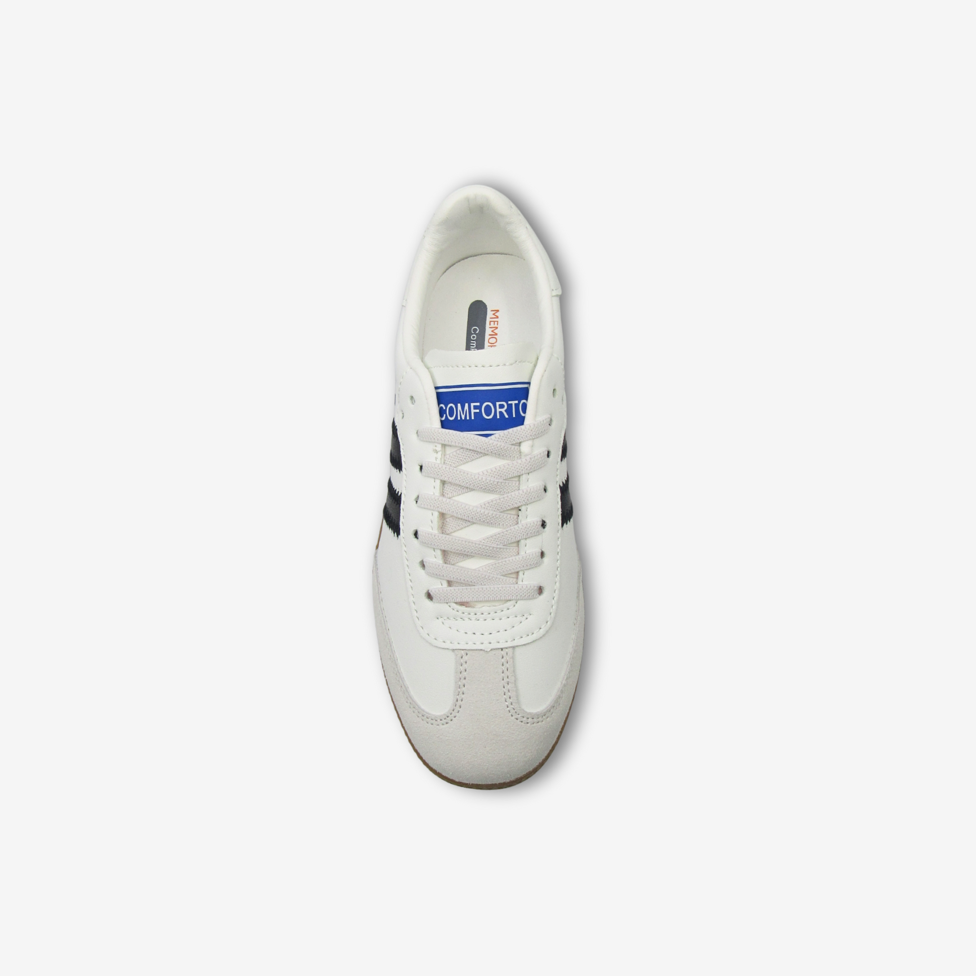 These COMFORTO women sneakers blend retro-inspired design with modern comfort. Featuring a sleek low-profile silhouette, contrast side stripes, and a gum sole, they deliver timeless style with a sporty edge. The cushioned insole and durable outsole make them ideal for all-day wear, whether you're on the move or keeping it casual.