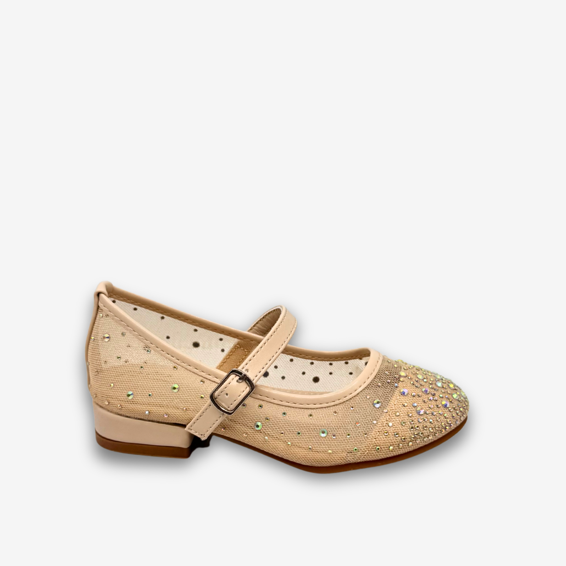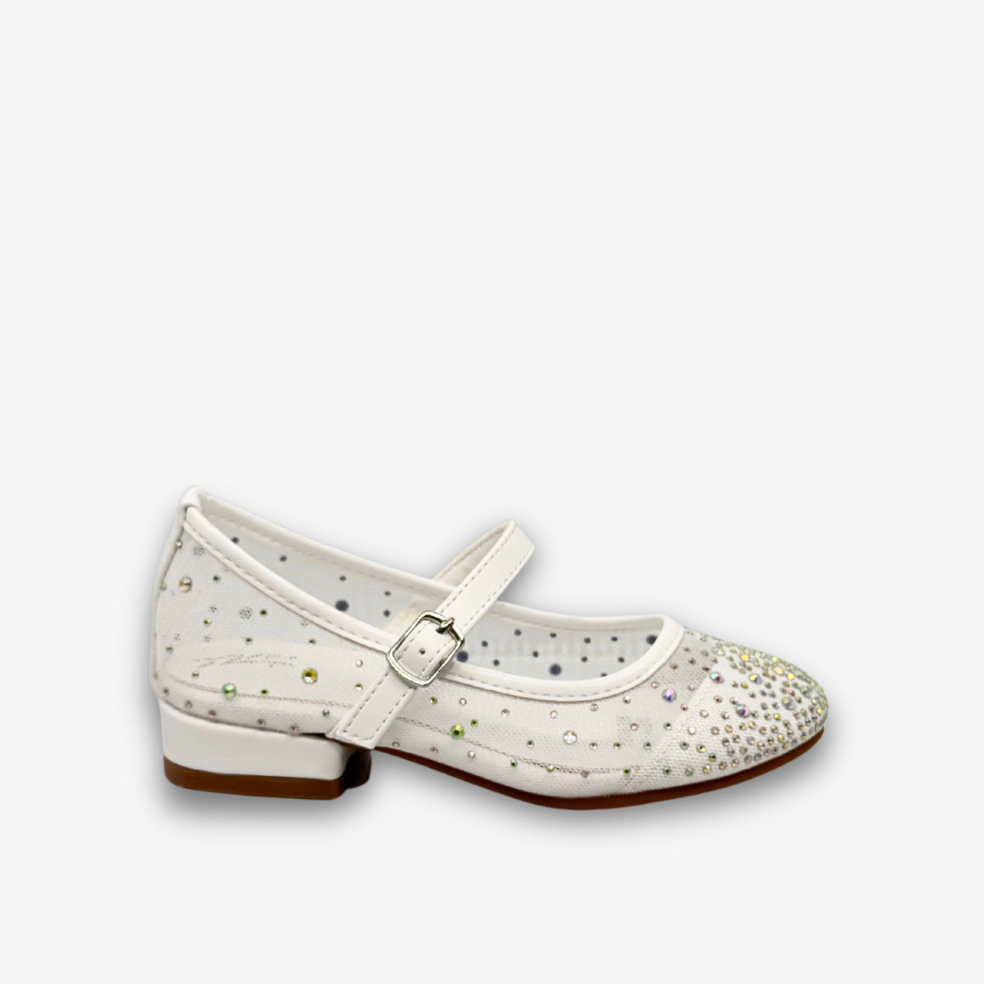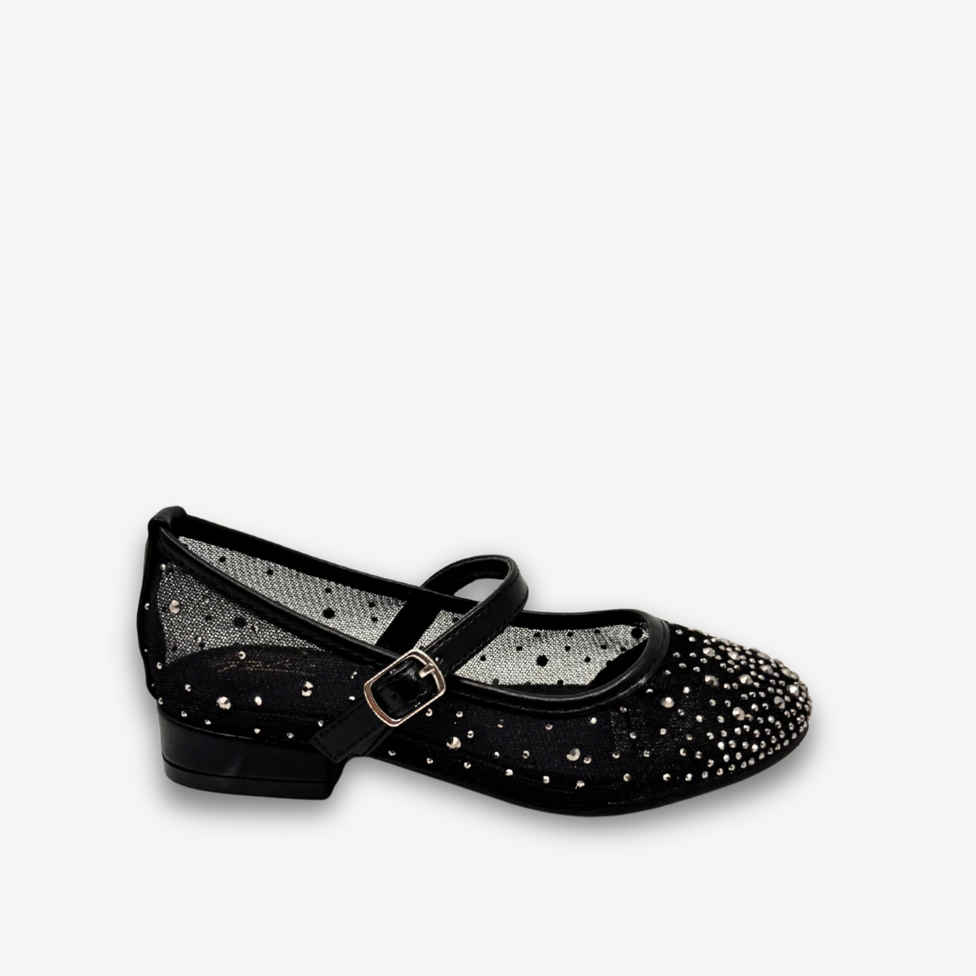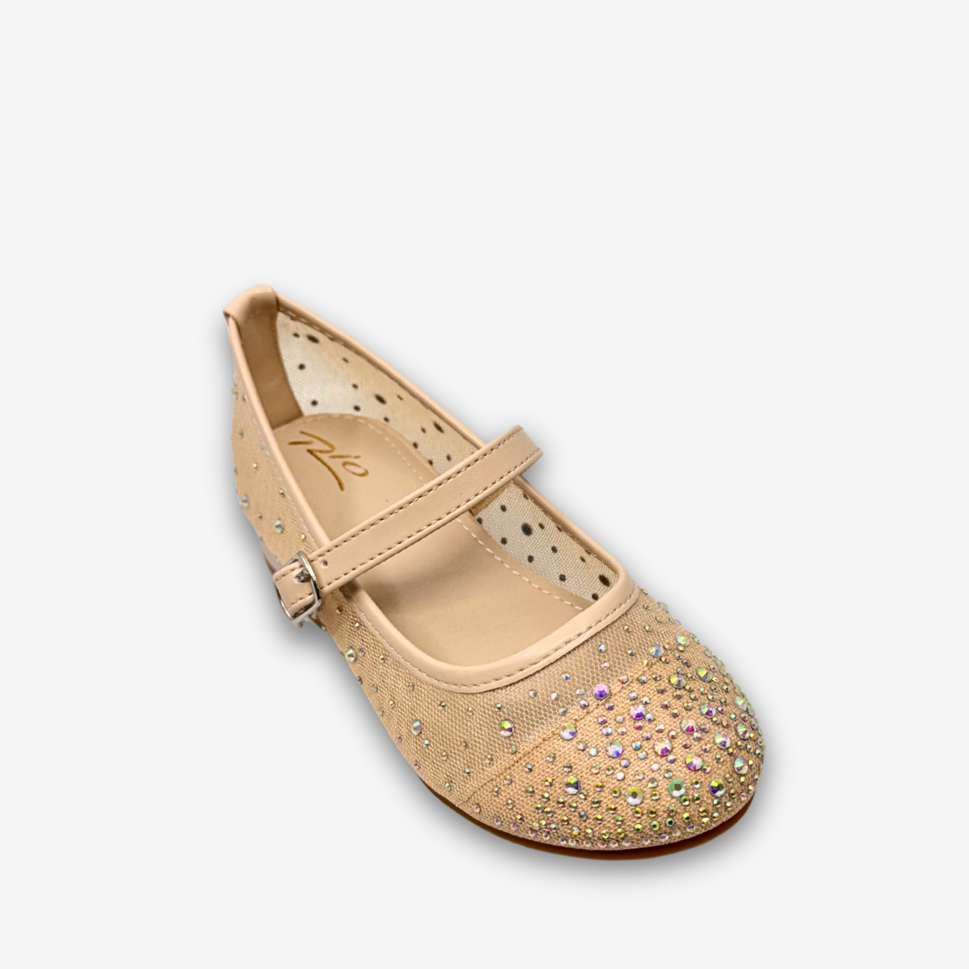 صُممت هذه الأحذية من ماركة ريو، ذات الكعب المنخفض، لإضفاء لمسة مميزة على اللحظات الصغيرة، وتتميز بحزام بإبزيم آمن ومقدمة مدببة مزينة بأحجار الراين الملونة ولمسات لامعة. تضفي البطانة المنقطة لمسة مرحة، بينما يجعلها تصميمها الأنيق مثالية للحفلات والفعاليات المدرسية أو المناسبات الخاصة.