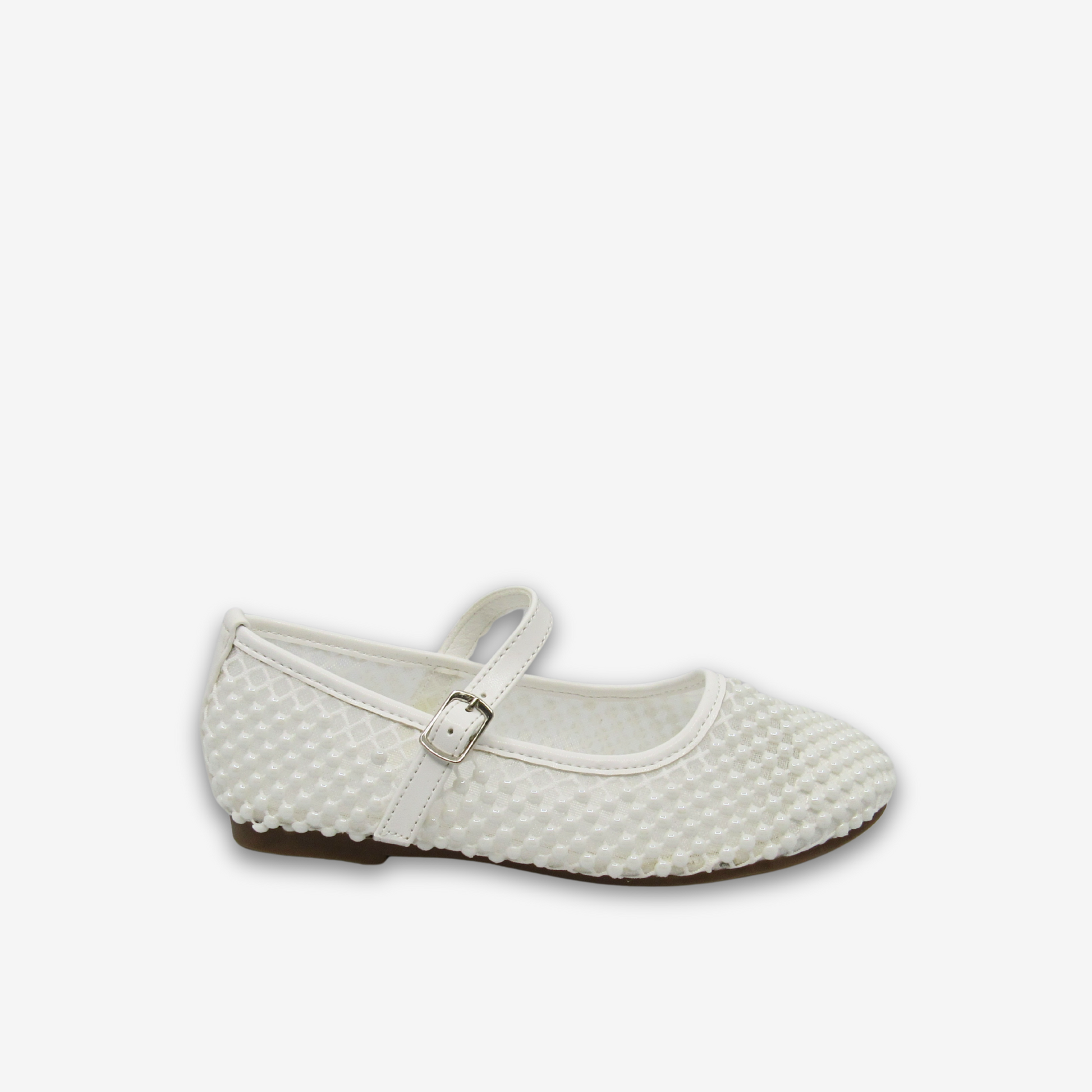 تجمع هذه الأحذية المسطحة من ريو للبنات بين التصميم المريح والتطريز الرقيق لإطلالة أنيقة. تتميز بجزء علوي شبكي مزين بتفاصيل تشبه اللؤلؤ وحزام كلاسيكي بإبزيم، مما يوفر الراحة والجاذبية في المناسبات الرسمية.