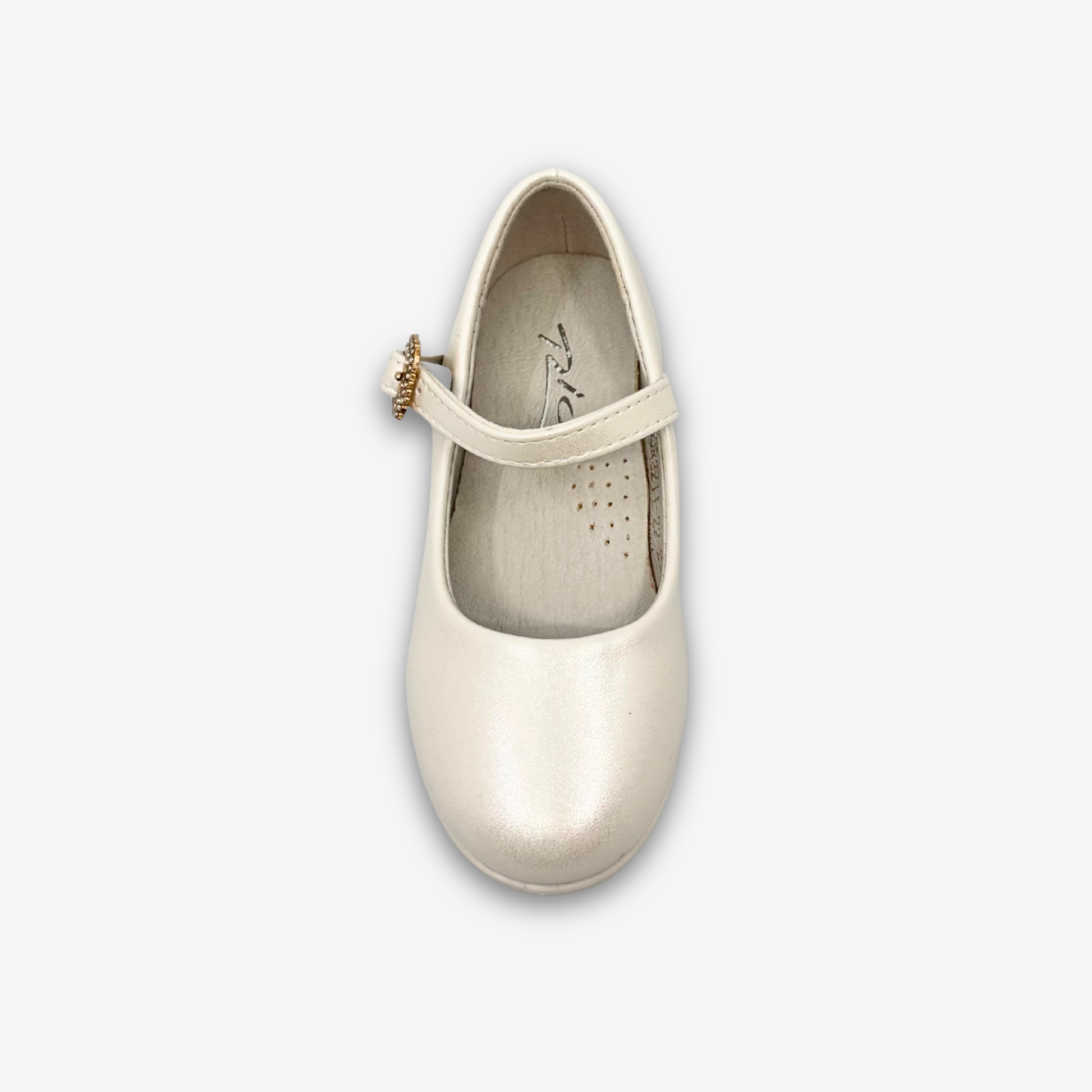 يتميز هذا الحذاء الأنيق ذو المقدمة المستديرة من ريو بتصميمه المرح والجذاب، حيث يزدان بحزام رقيق على شكل فيونكة مزينة باللؤلؤ والذهب. صُمم الحذاء ببطانة تسمح بمرور الهواء ونعل داخلي مبطن، مما يجعله خيارًا مثاليًا للحفلات والمناسبات المدرسية والعائلية الخاصة.