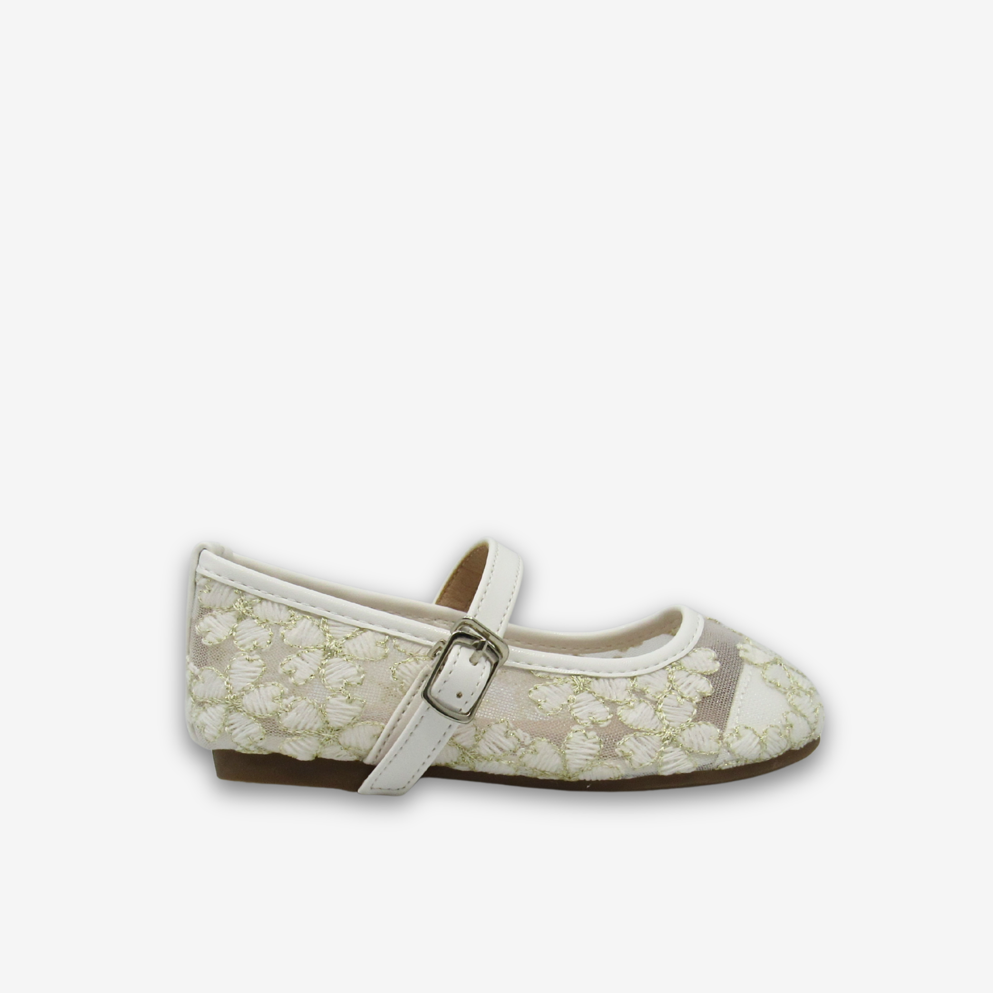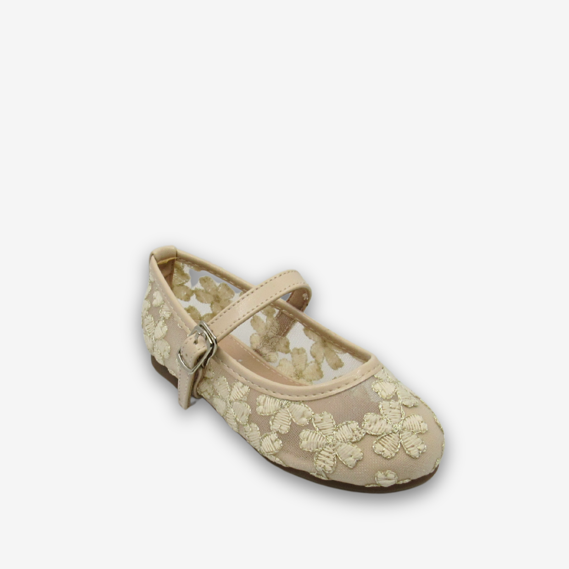 صُممت أحذية ريو المسطحة للبنات لتُبهج الأنظار بتطريزها الزهري الرقيق ونسيجها الشبكي الخفيف. يتميز تصميمها الكلاسيكي ذو المقدمة المستديرة بحزام محكم وإبزيم معدني، ليجمع بين الأناقة والراحة. مثالية للمناسبات الرسمية، حيث تحافظ البطانة الناعمة والنعل المرن على راحة أقدام الصغيرات طوال اليوم.