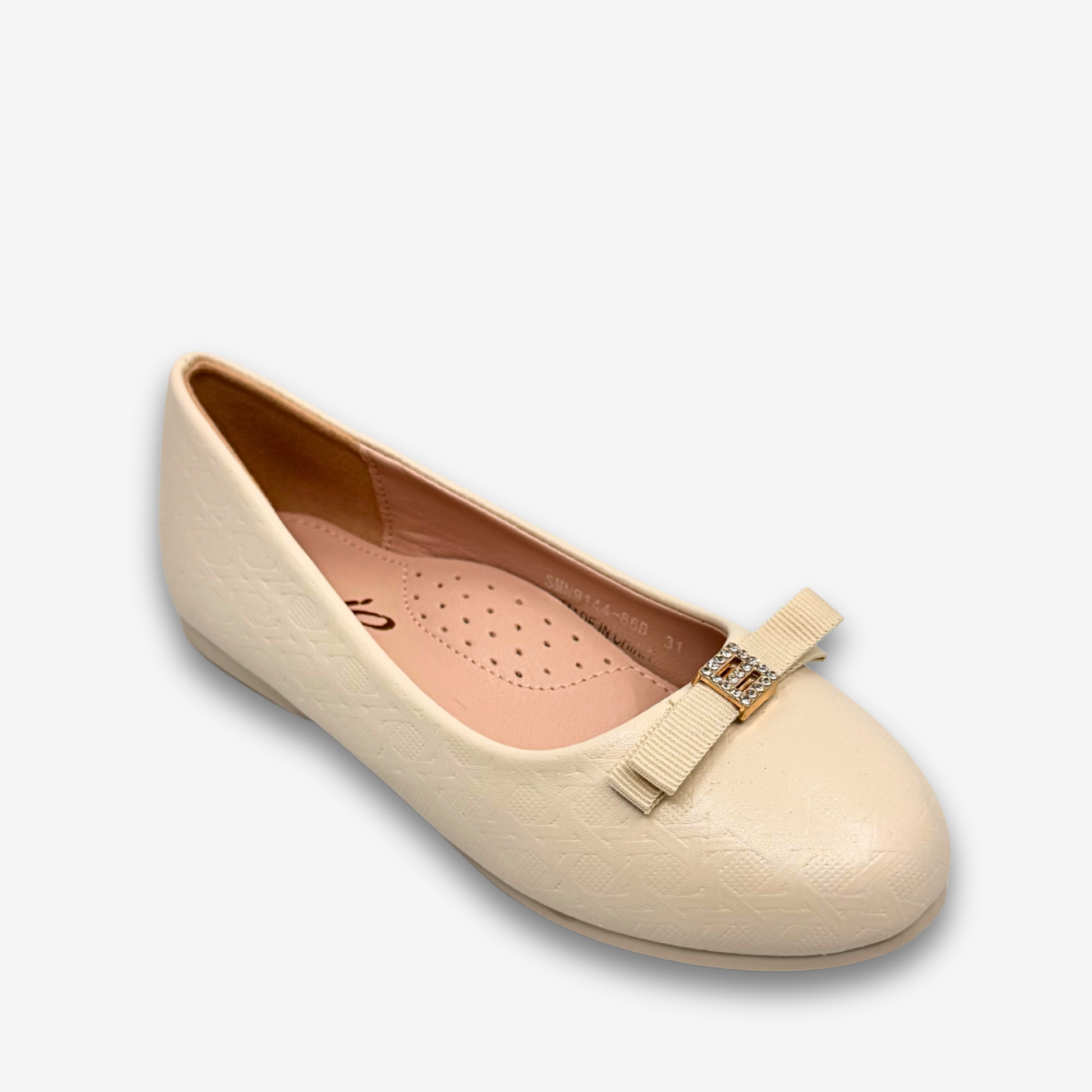 صُمم هذا الحذاء ليمنحكِ أناقةً لا تُضاهى، فهو يتميز بمقدمة دائرية وجزء علوي مزخرف بتفاصيل دقيقة. يضفي فيونكة مزينة بلمسة معدنية لمسةً راقية، بينما يضمن النعل الداخلي المبطن والمثقب راحةً فائقة. مثالي للإطلالات الكاجوال، أو العمل، أو المناسبات شبه الرسمية.