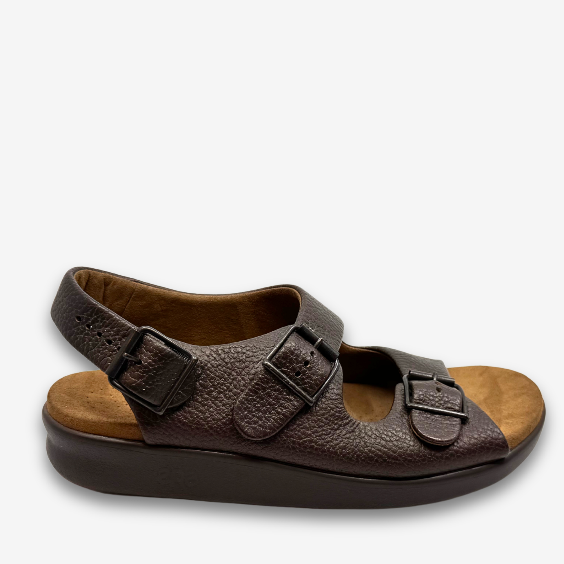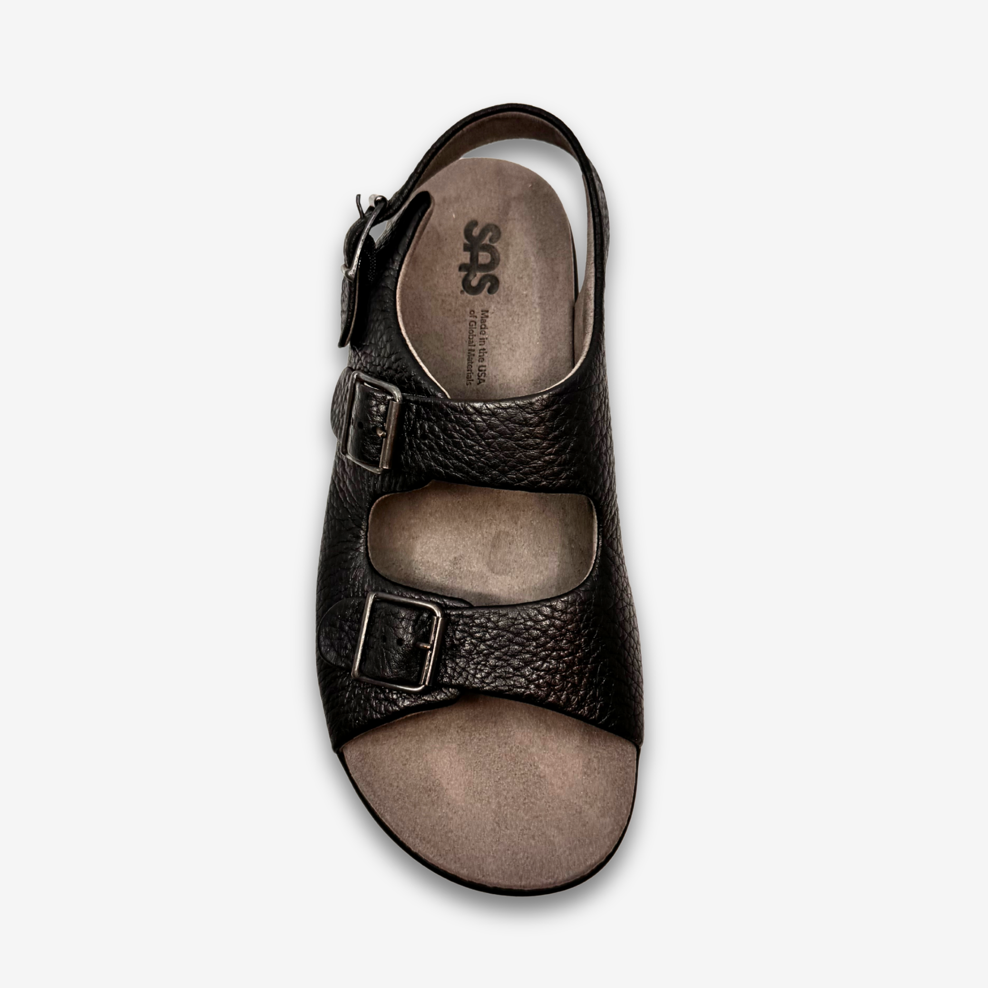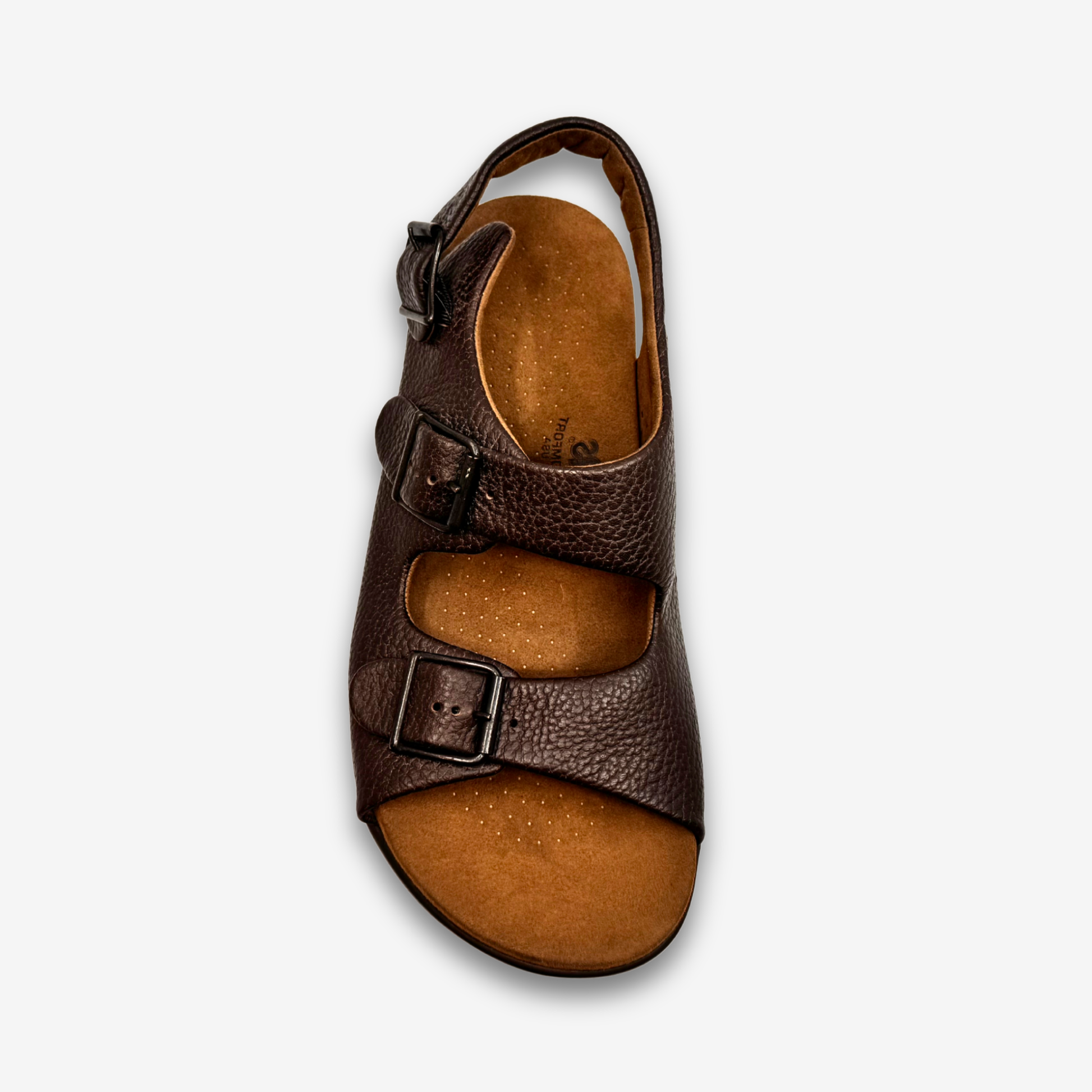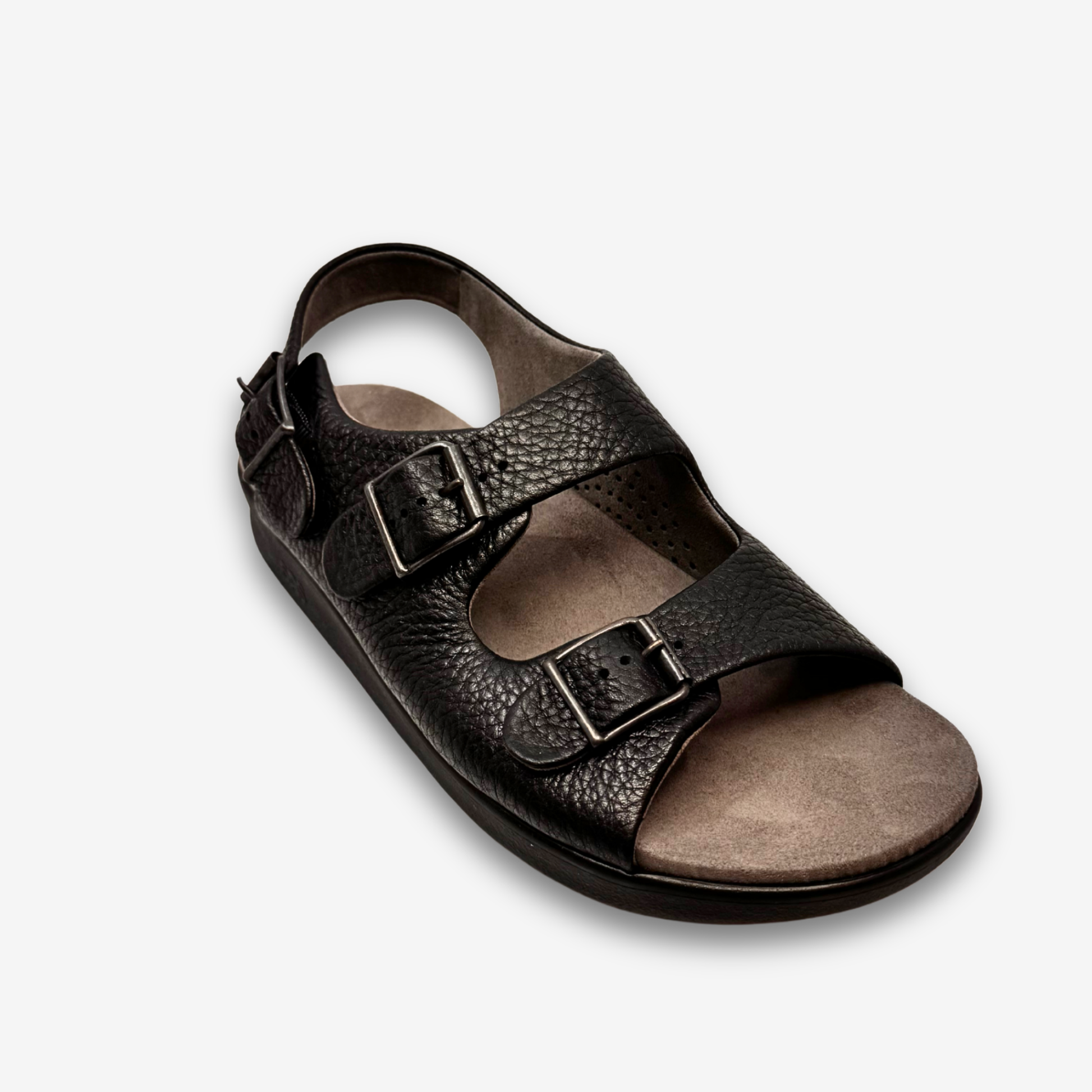 يتميز هذا الصندل براحة لا مثيل لها. جلد أصلي مموج مبطن ببطانة ناعمة تحيط بالقدم. ثلاثة أحزمة قابلة للتعديل مزودة بأبازيم لمقاس مناسب، بينما يحتضن نعل داخلي مُصمم بشكل مُحيط ومُغطى بألياف دقيقة ناعمة انحناءات قدمك.