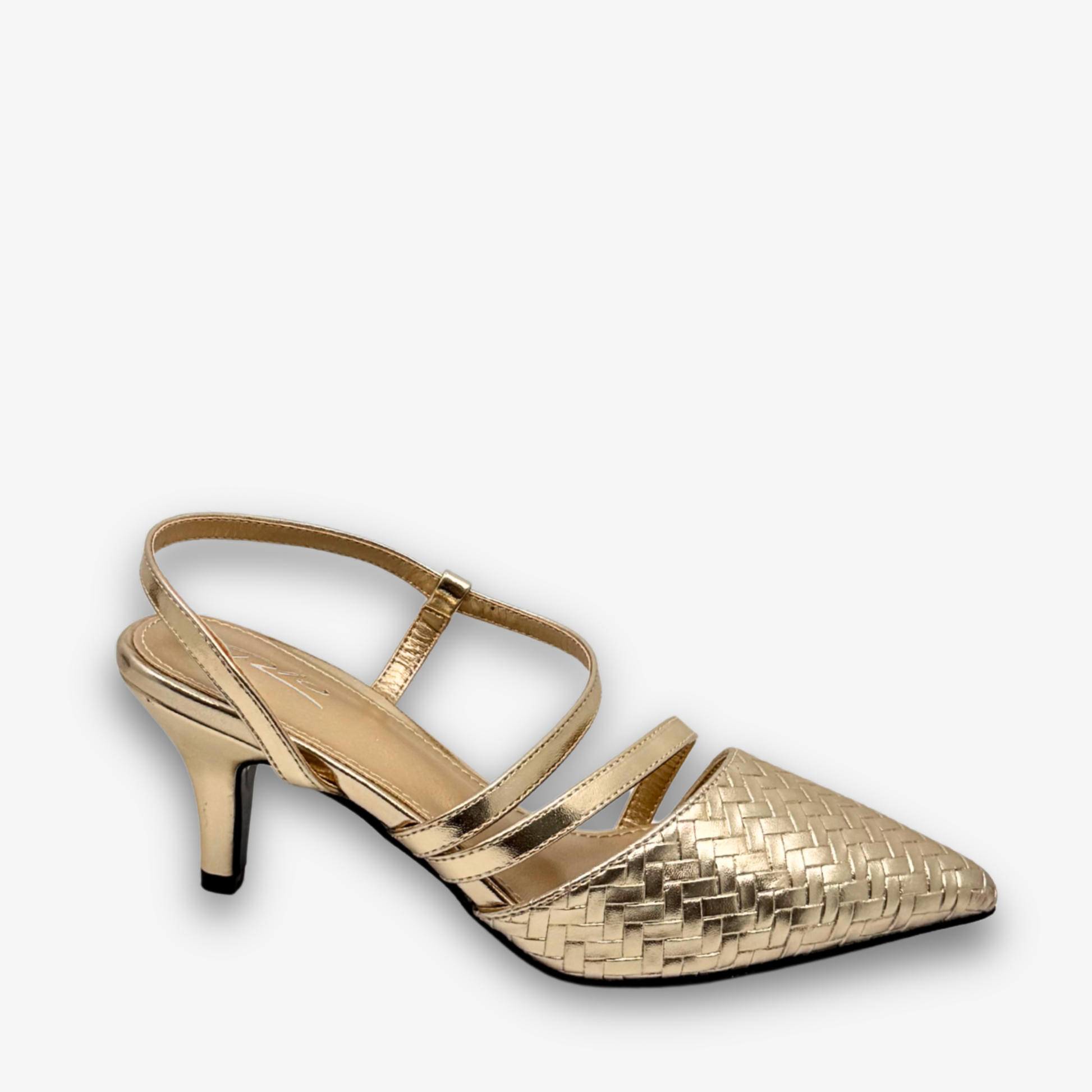 الوصف: يتميز هذا الحذاء بتصميم أنيق ذي مقدمة مدببة وكعب رفيع، يضفي لمسة راقية على أي إطلالة بفضل الجزء العلوي المنسوج وأحزمته المتقاطعة الرقيقة. يوفر حزام الكعب الداعم ثباتًا محكمًا، بينما يتناسب تصميمه الأنيق بسلاسة مع مختلف المناسبات، من النهار إلى المساء. خيار مثالي للمناسبات الرسمية وشبه الرسمية.