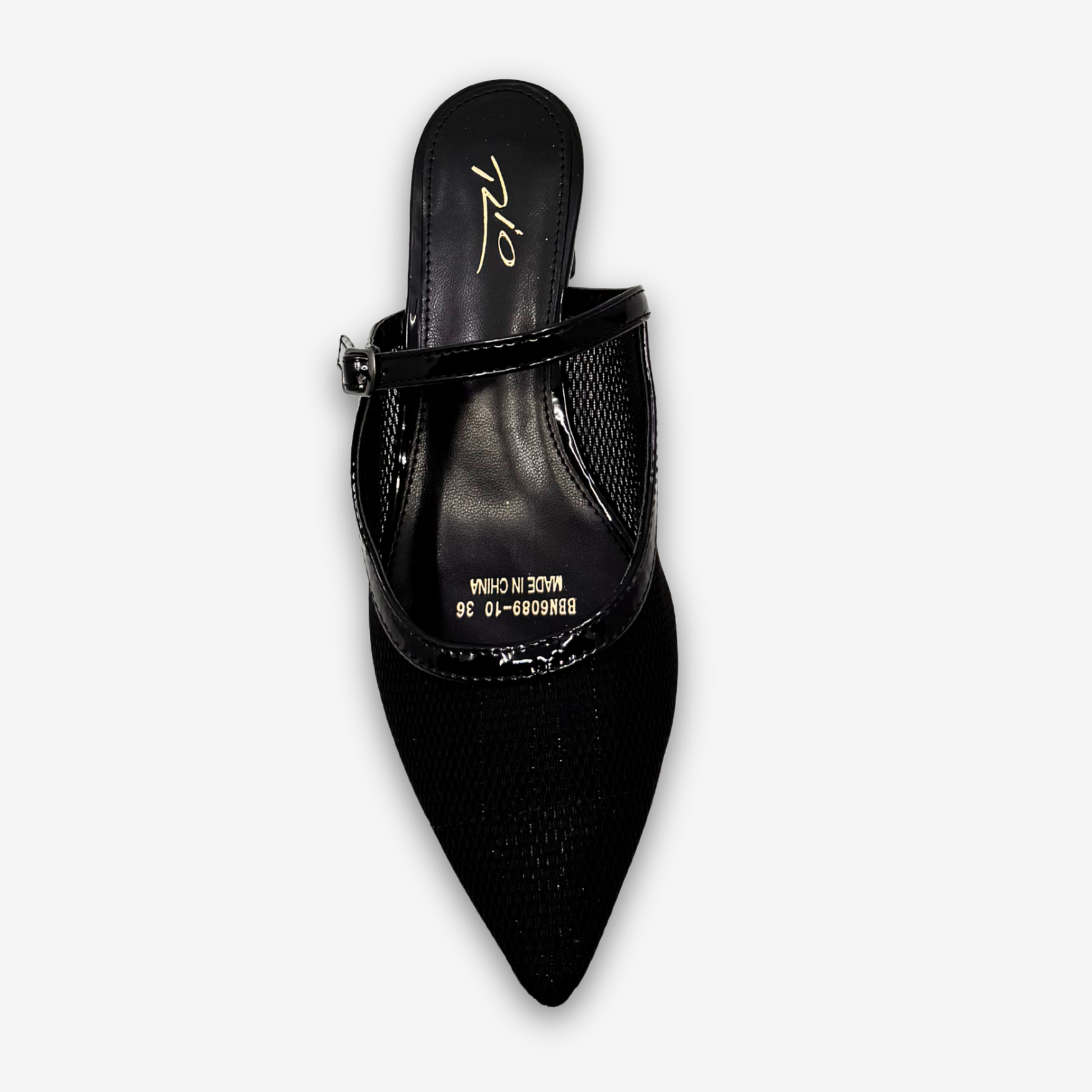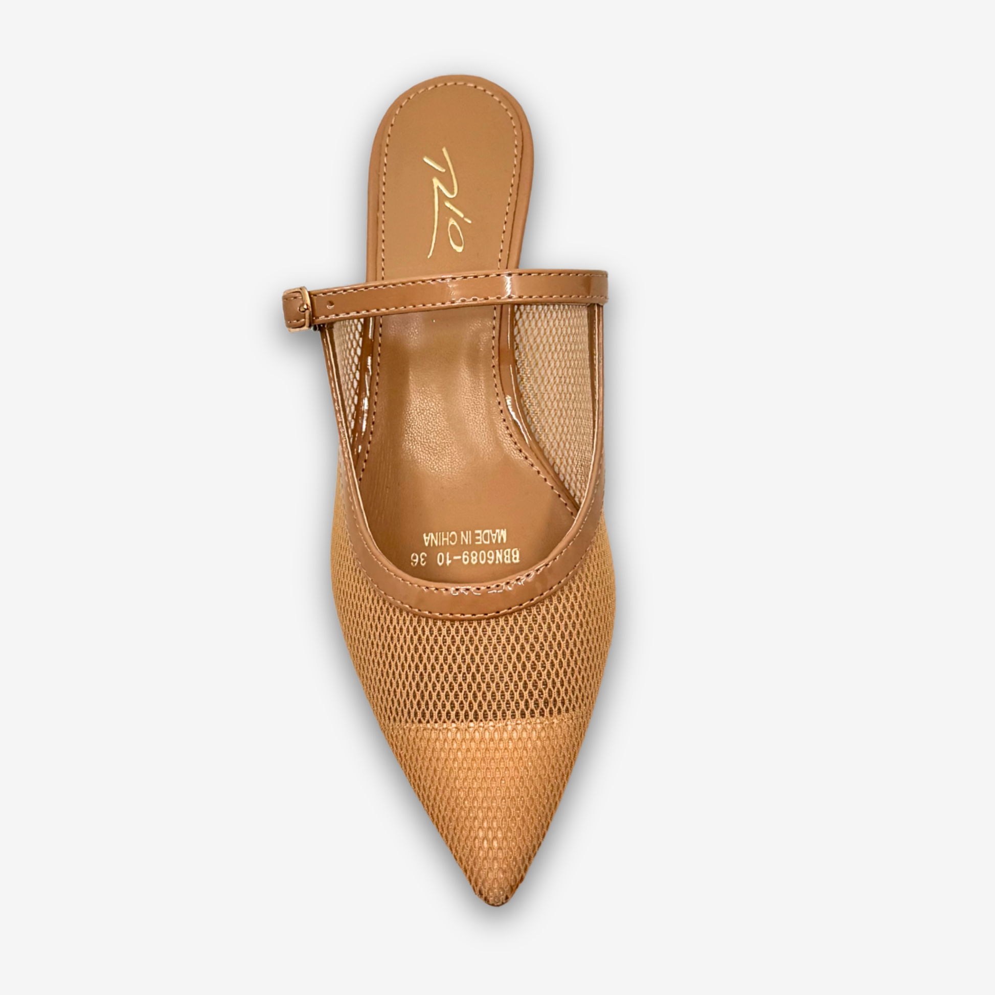 يجمع هذا الحذاء ذو الكعب العالي المفتوح من الخلف والمقدمة المدببة من ريو بين الأناقة العصرية واللمسة العصرية. يتميز بألواح شبكية تسمح بالتهوية وحزام أنيق بإبزيم، ويرتكز على كعب منخفض بتصميم مميز. صُمم هذا الحذاء ليجمع بين الراحة والأناقة، ويتناسب بسهولة مع مختلف المناسبات، من الإطلالات الكاجوال إلى المناسبات شبه الرسمية.