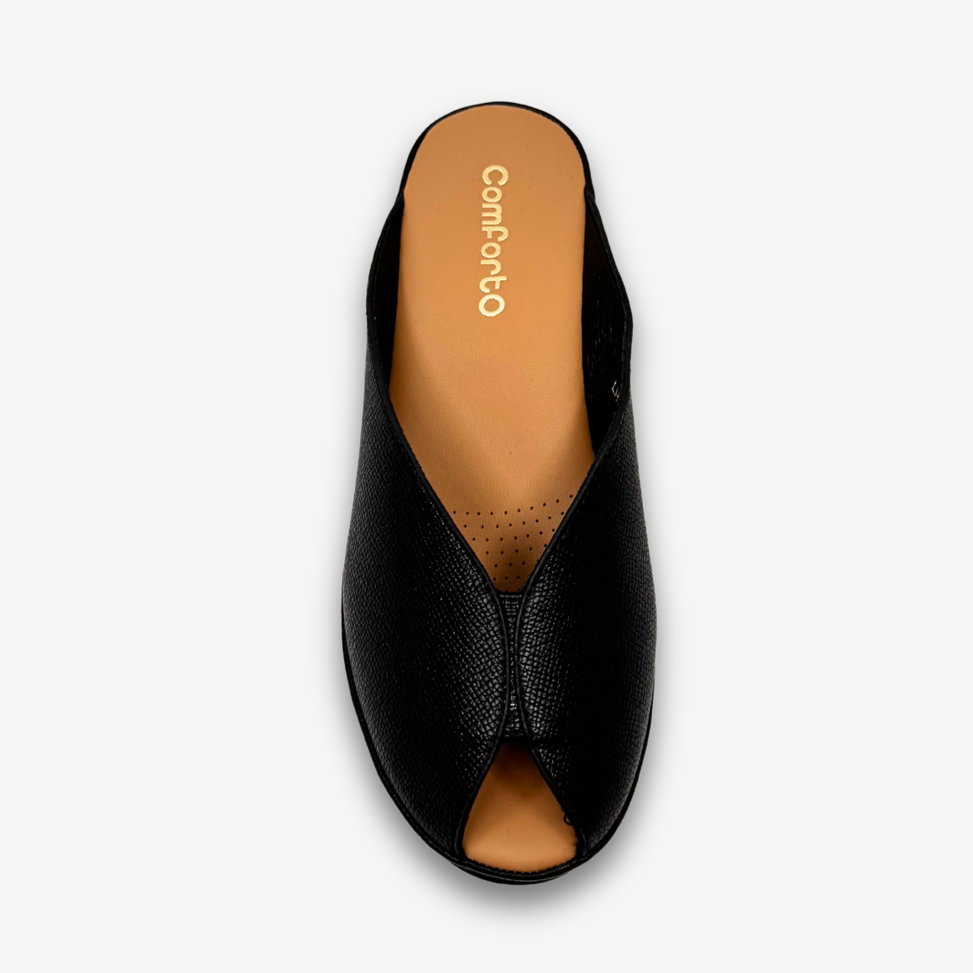 يتميز هذا الحذاء ذو الكعب العريض المفتوح من الأمام من كومفورتو بتصميم أنيق وعصري، وجزء علوي مزخرف ونعل داخلي مبطن لتوفير الراحة طوال اليوم. كما يضفي تصميمه سهل الارتداء ونعله ذو النعل السميك لمسة أنيقة، مما يجعله خيارًا مثاليًا للنزهات غير الرسمية، أو قضاء المشاوير في الطقس الدافئ، أو حتى الإطلالات شبه الرسمية المريحة.