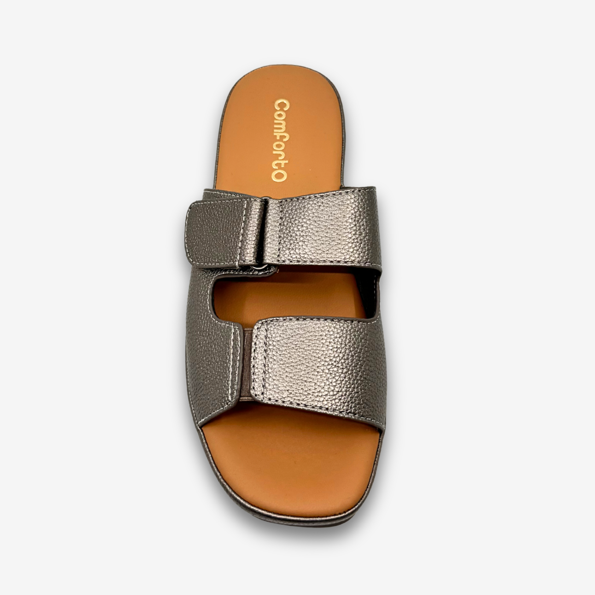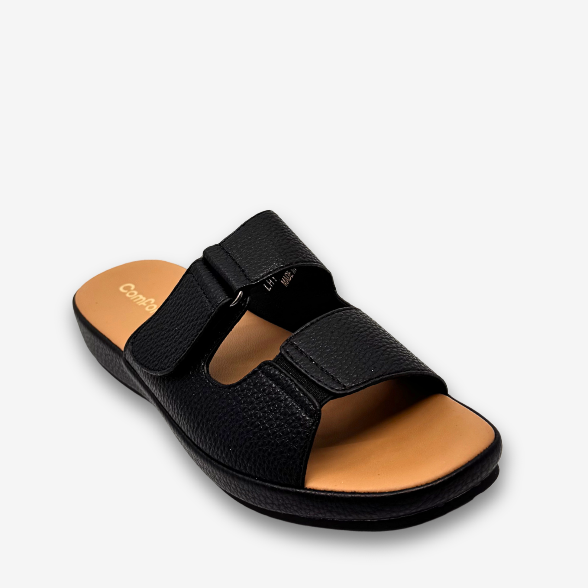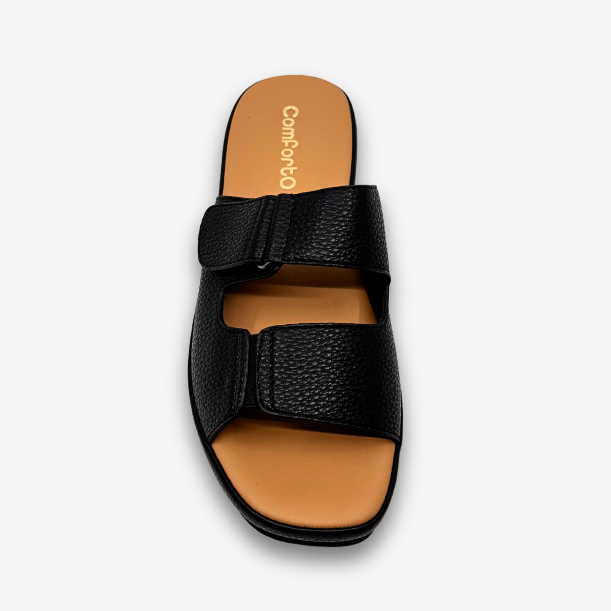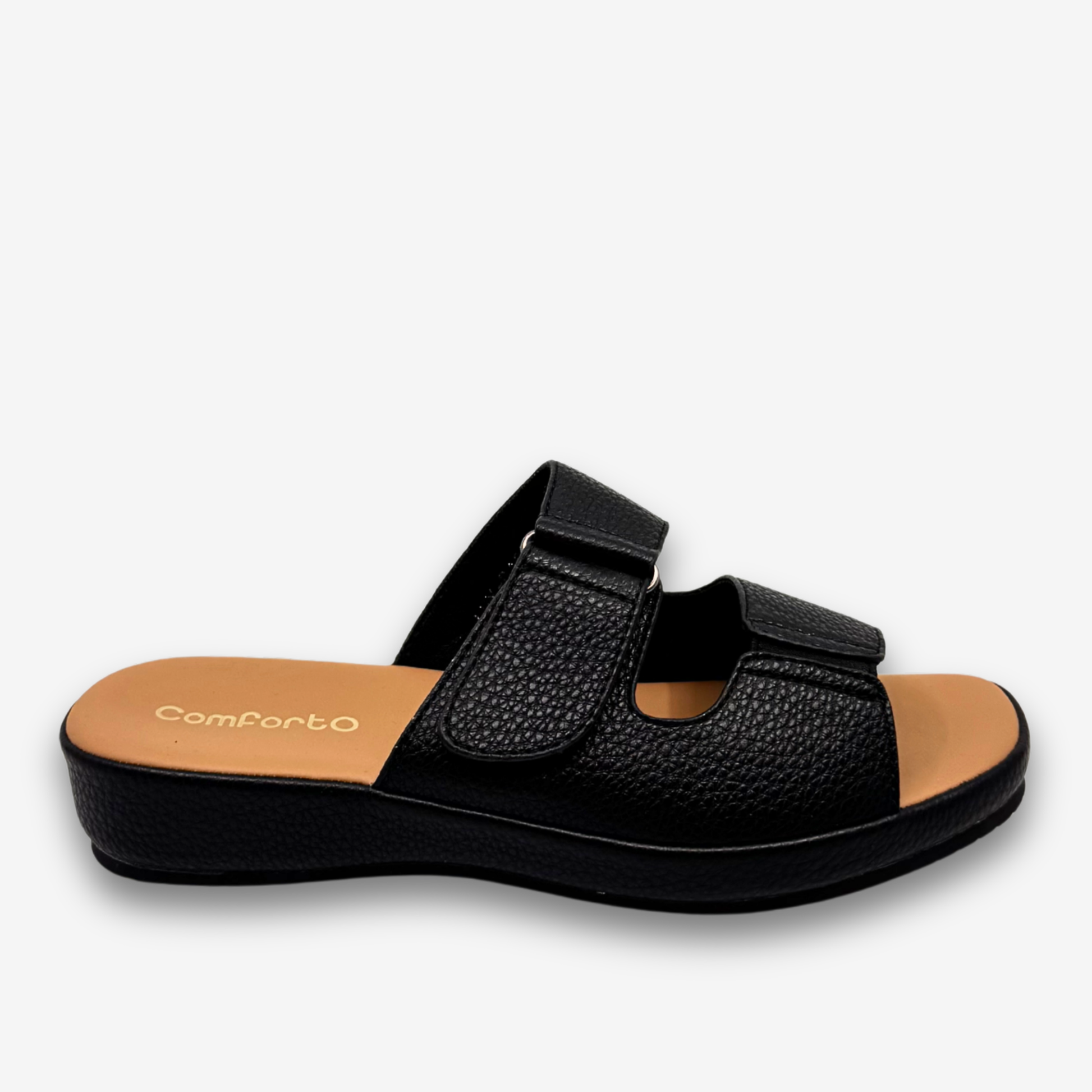 يتميز هذا الحذاء المفتوح من الأمام من كومفورتو بتصميمه الداعم والمريح، ويحتوي على حزامين عريضين قابلين للتعديل ونعل داخلي مبطن لتوفير الراحة طوال اليوم. كما أن النعل المرتفع قليلاً والسطح المحكم يجعله خيارًا عمليًا للارتداء اليومي، وقضاء المشاوير، أو الاستخدام المريح داخل المنزل وخارجه.