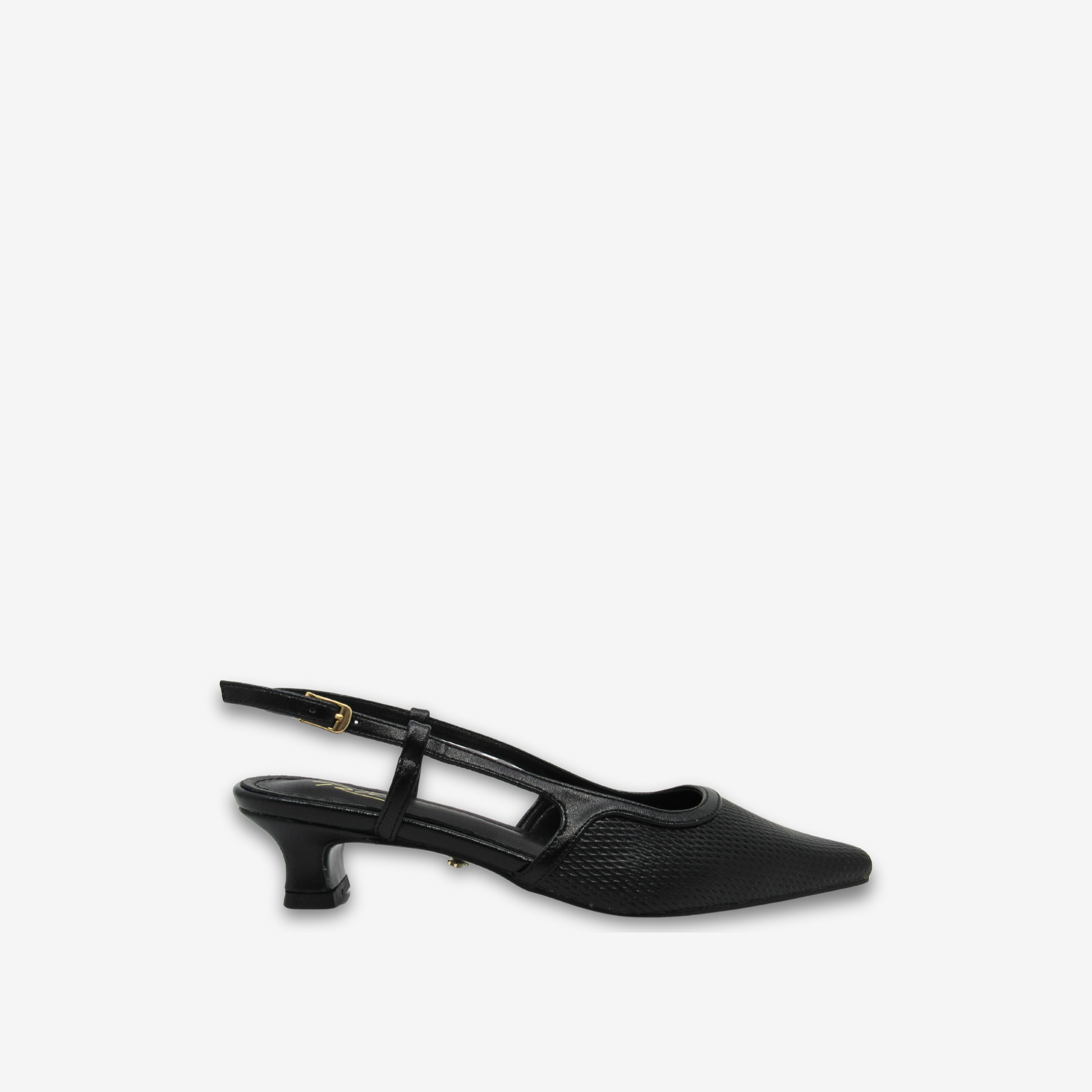 صُمم حذاء ريو النسائي ذو الكعب المنخفض ليجمع بين الأناقة والراحة العملية. يتميز بتصميم مقدمة مدببة وجزء علوي مزخرف بتفاصيل دقيقة، مما يمنحه مظهرًا أنيقًا مناسبًا للمناسبات الرسمية وشبه الرسمية. يضمن حزام الكتف الخلفي المزود بإبزيم قابل للتعديل ثباتًا محكمًا، بينما يوفر الكعب المنخفض دعمًا متوازنًا. كما يعزز النعل الداخلي المبطن الراحة، مما يجعله مثاليًا للارتداء لفترات طويلة.