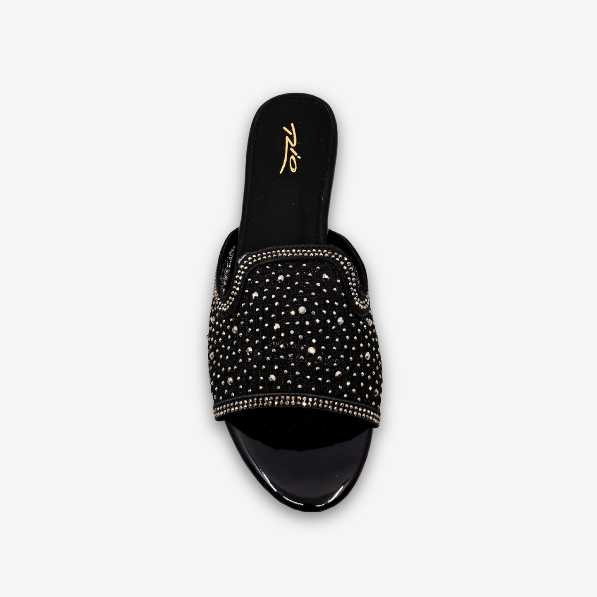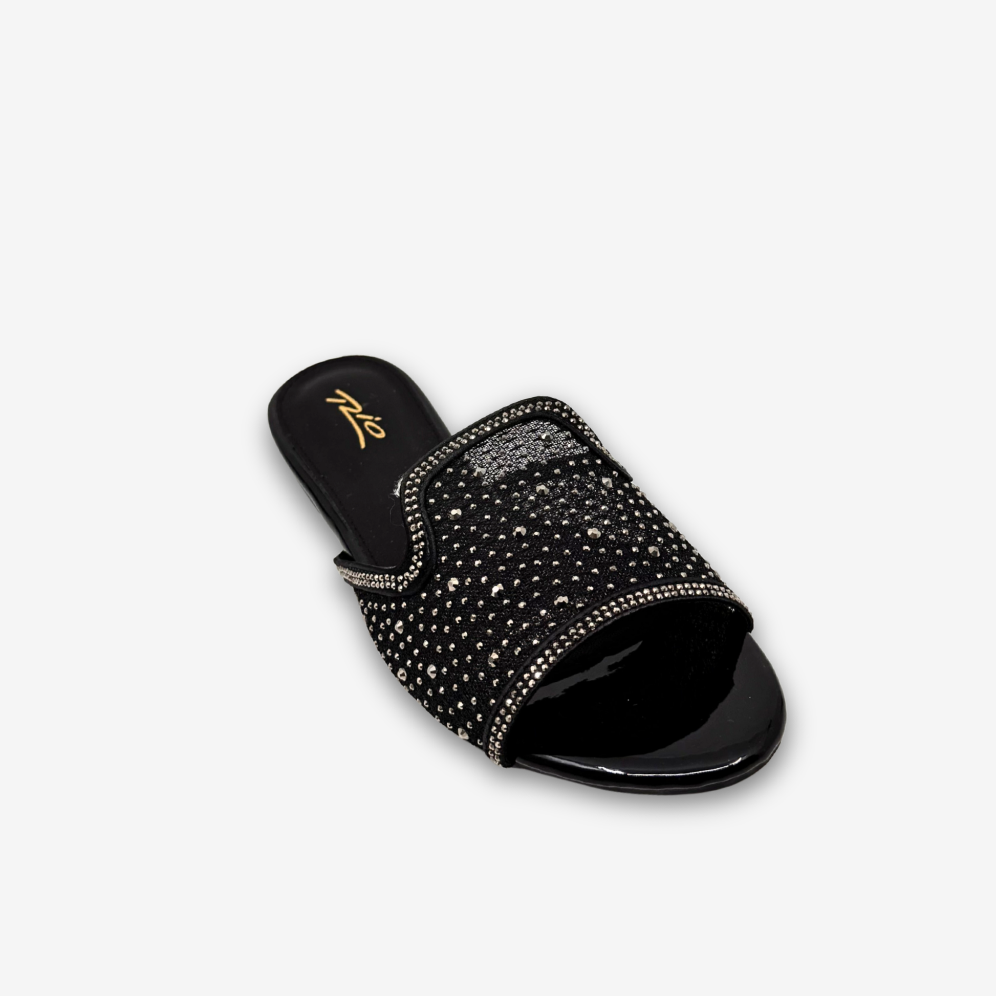 يتميز هذا الحذاء المسطح سهل الارتداء من ريو بتصميمه الرقيق والساحر، حيث يتكون من جزء علوي شبكي مزين بأحجار الراين وحواف لامعة. يوفر تصميمه المفتوح من الأمام ونعله الداخلي المبطن راحة فائقة مع لمسة أنيقة، مما يجعله خيارًا مثاليًا للتجمعات الاحتفالية، أو الإطلالات الكاجوال الأنيقة، أو المناسبات شبه الرسمية.