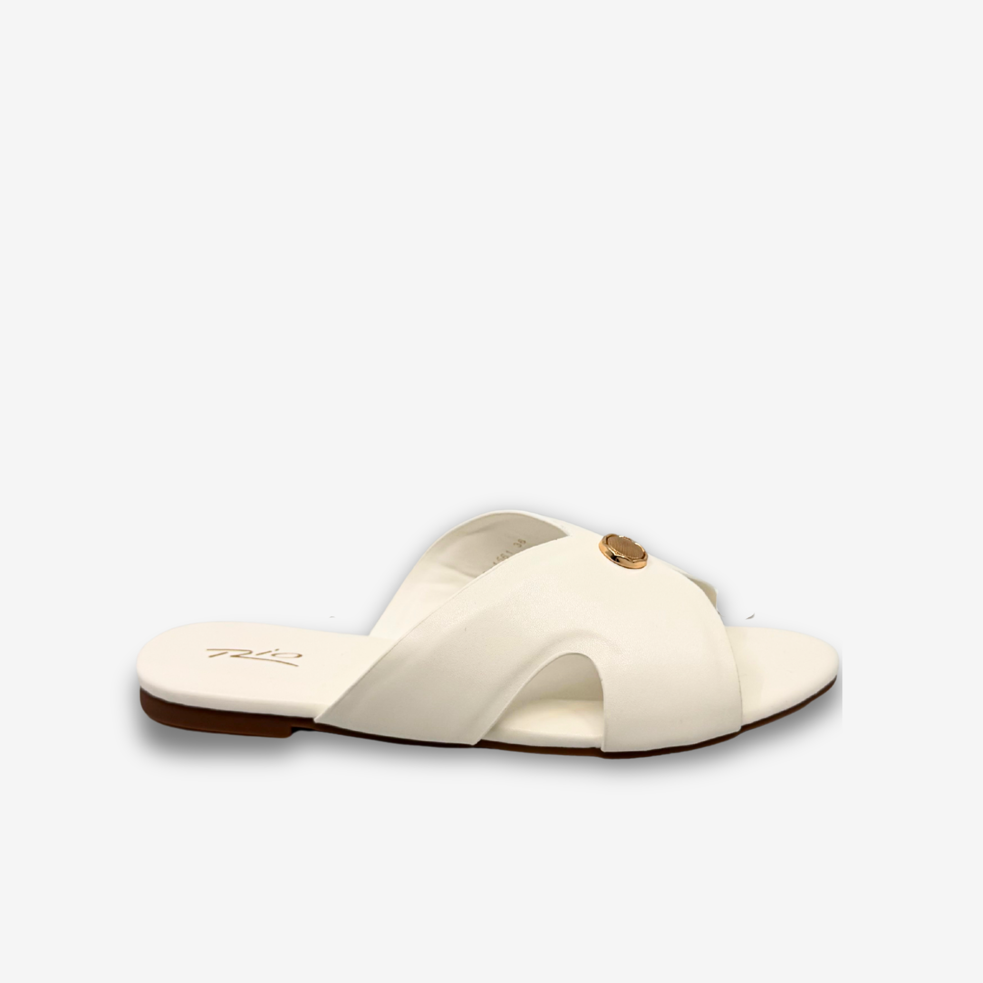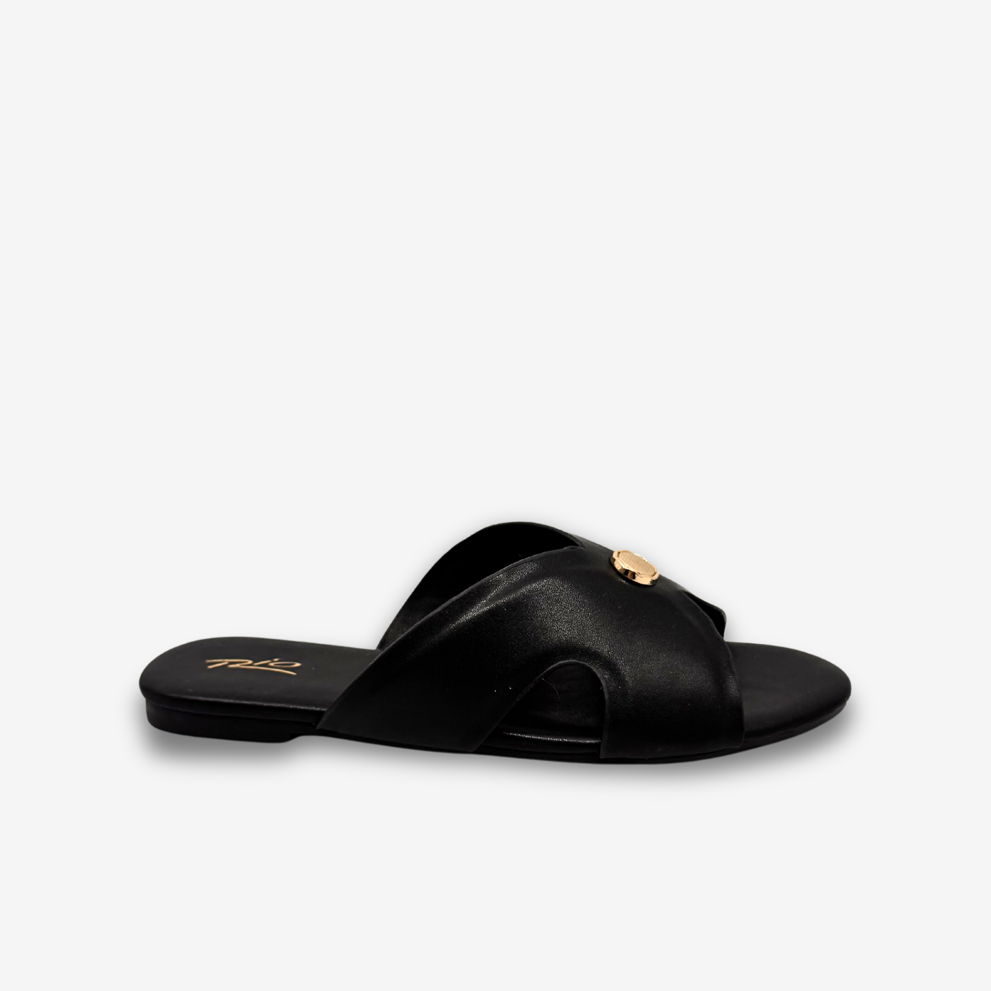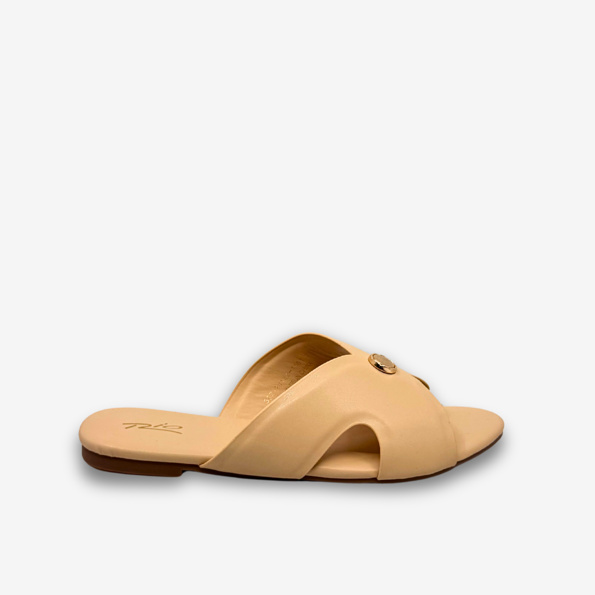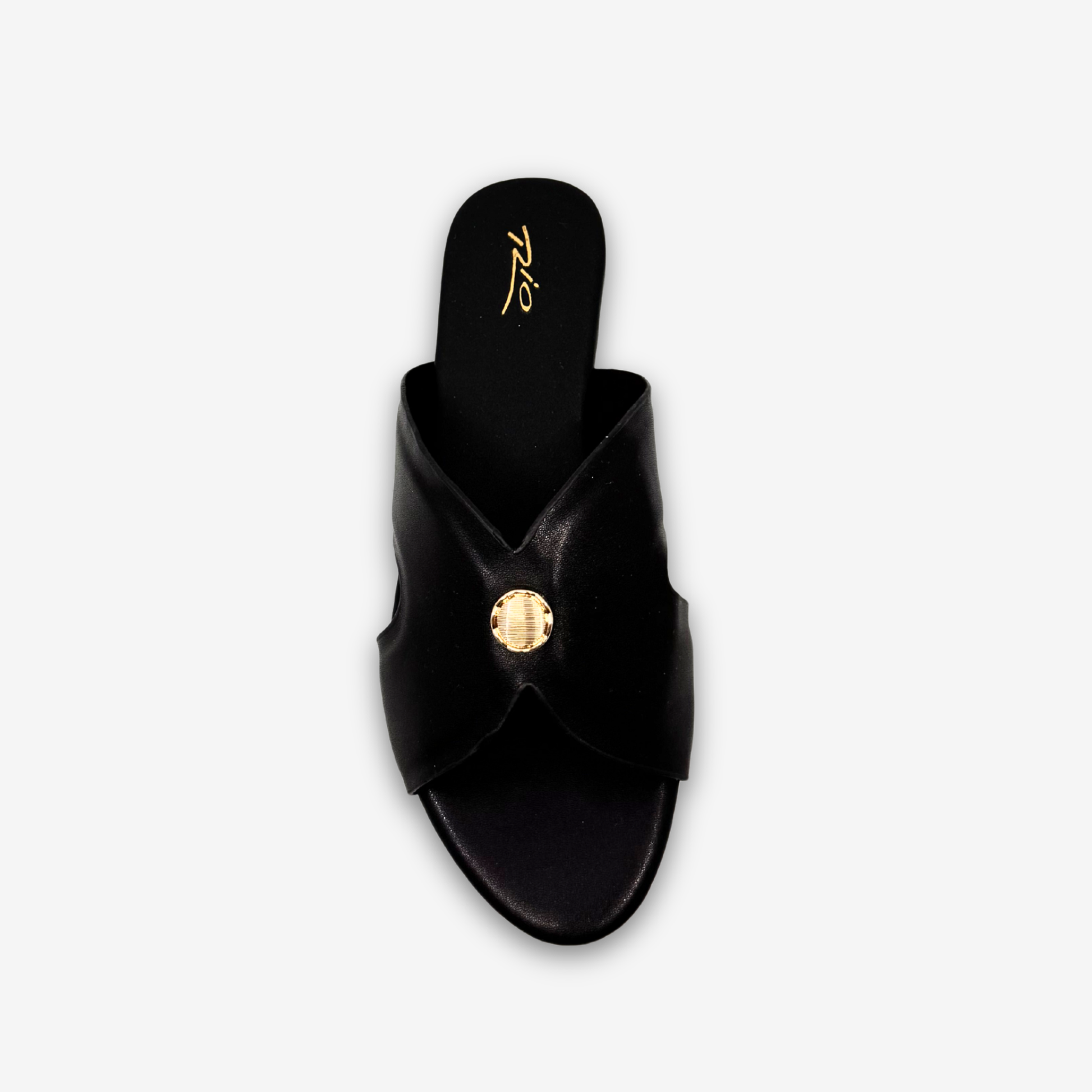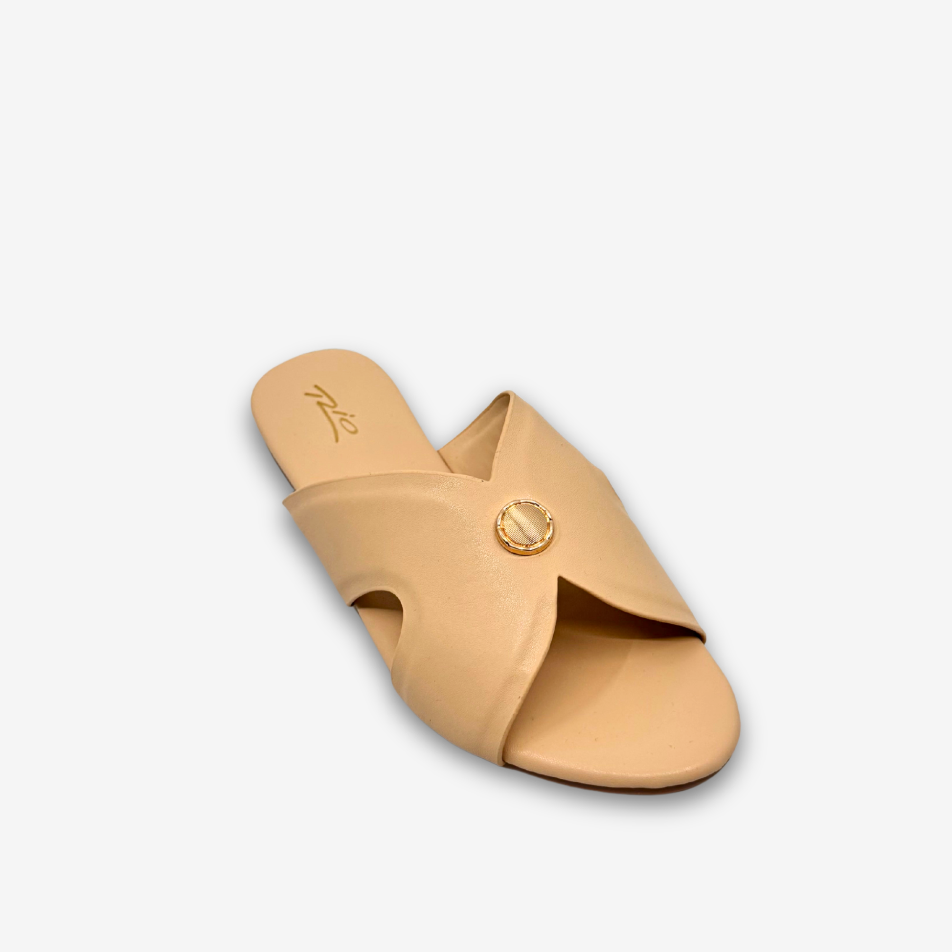 يتميز هذا الحذاء المسطح الأنيق والسهل الارتداء من ريو بأحزمة متقاطعة مزينة بقطعة ذهبية اللون، وتصميم مفتوح من الأمام. يوفر النعل الداخلي المبطن راحة فائقة، بينما يضفي التصميم البسيط لمسة راقية على الإطلالات الكاجوال أو شبه الرسمية.