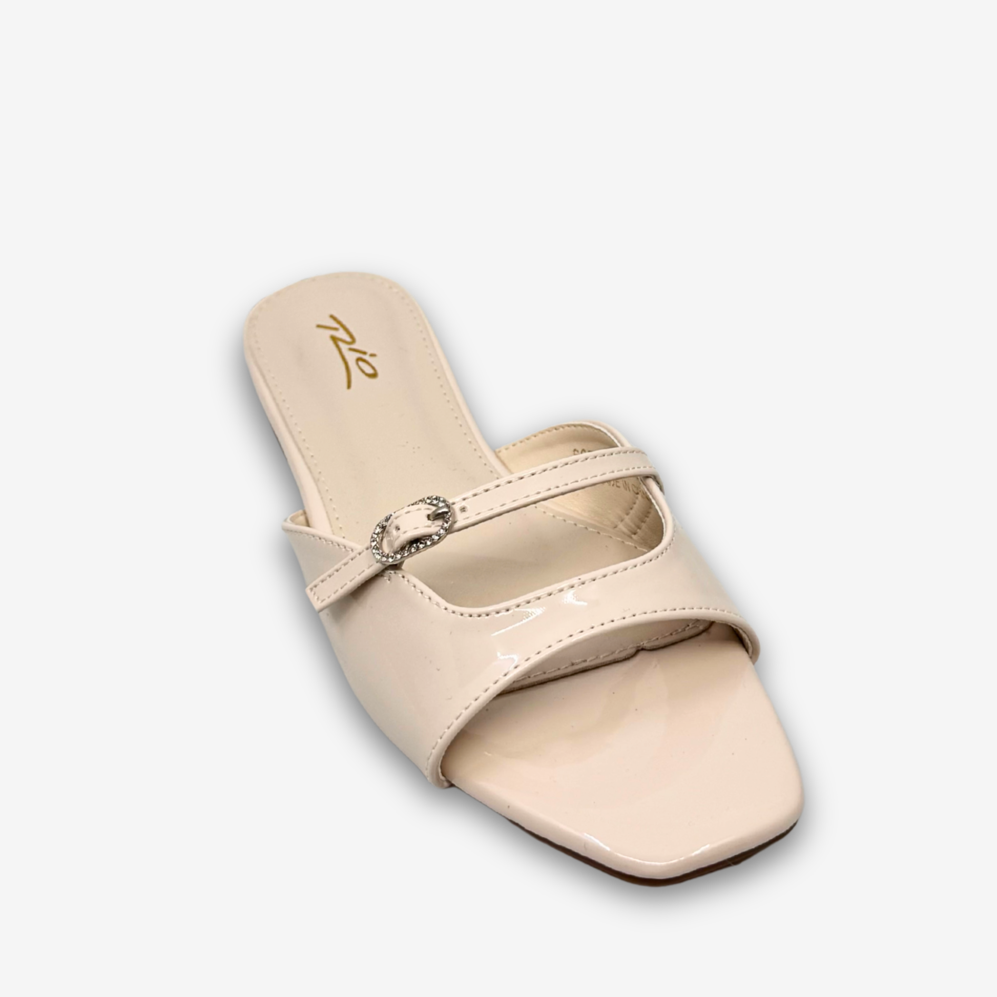 يتميز هذا الحذاء المسطح ذو المقدمة المفتوحة من ريو بتصميمه البسيط والأنيق، ولمسة نهائية لامعة، وحزام مزخرف بإبزيم معدني. يوفر النعل المبطن والكعب المنخفض راحة يومية، بينما يجعله لونه المحايد خيارًا مثاليًا للإطلالات الكاجوال أو شبه الرسمية.