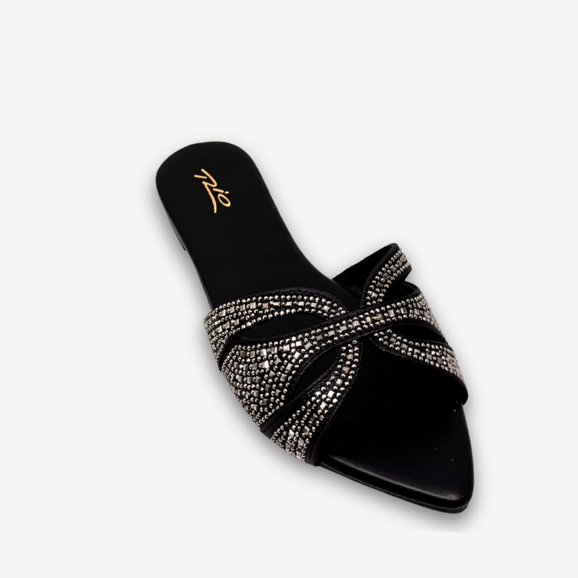 أضيفي لمسة من التألق إلى كل خطوة مع هذا الحذاء المسطح المفتوح من الأمام من ريو، والذي يتميز بلمسة نهائية معدنية وحزام مزين بأحجار الراين. يضمن النعل المبطن راحة فائقة، بينما يجعله تصميمه الأنيق مثالياً للمناسبات غير الرسمية، والتجمعات الاحتفالية، أو حتى السهرات المسائية المريحة.