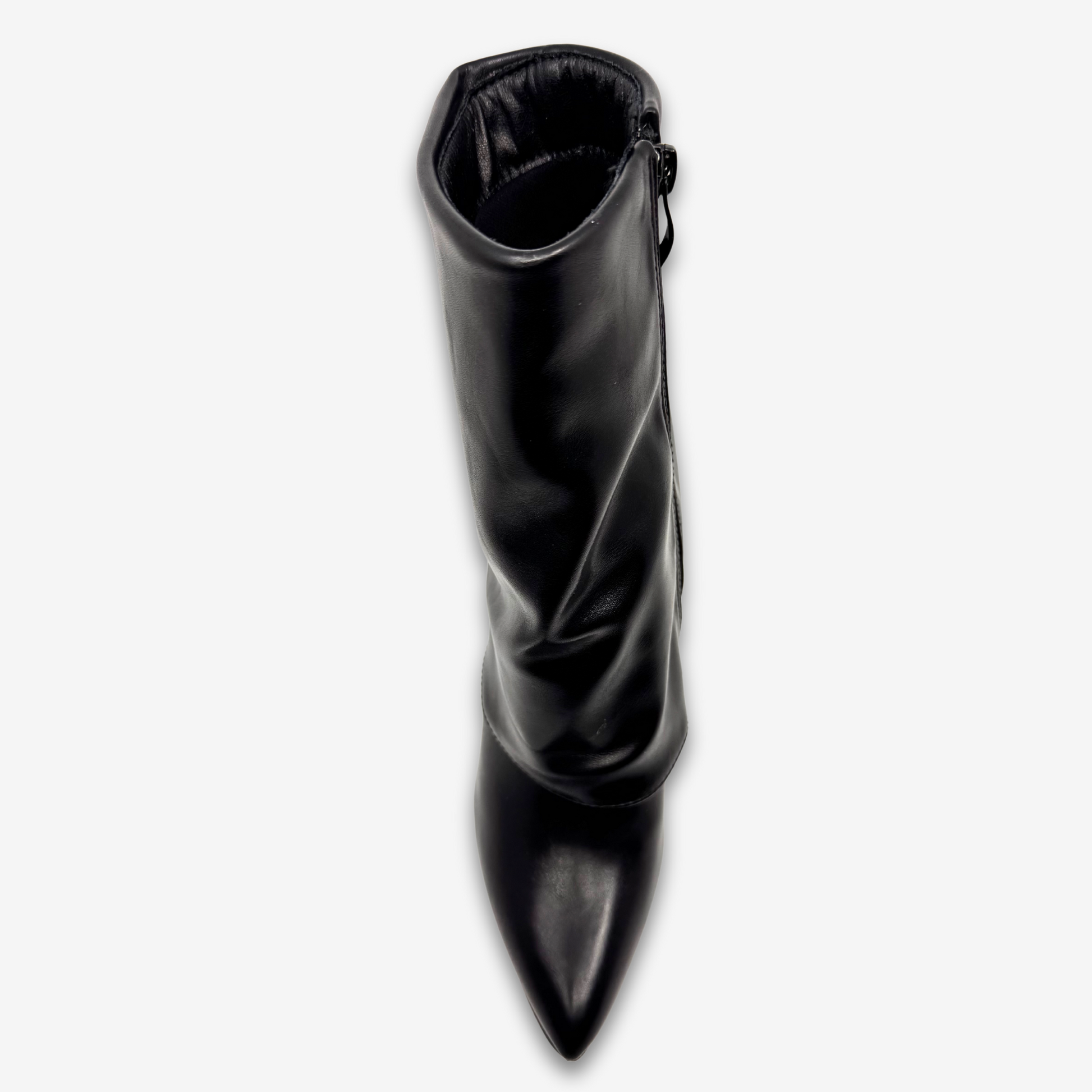 يمزج هذا الحذاء ذو الكعب المتوسط بين الأناقة المريحة والتصميم الأنيق، ويتميز بساق مجمعة بنعومة ومقدمة مدببة لإطلالة عصرية. يوفر الكعب المسطح ثباتًا دون المساس بالأناقة، مما يجعله خيارًا متعدد الاستخدامات لإطلالات النهار والمساء. مصمم ليُضفي لمسة ساحرة على أي إطلالة بلمسة عصرية وجاذبية.