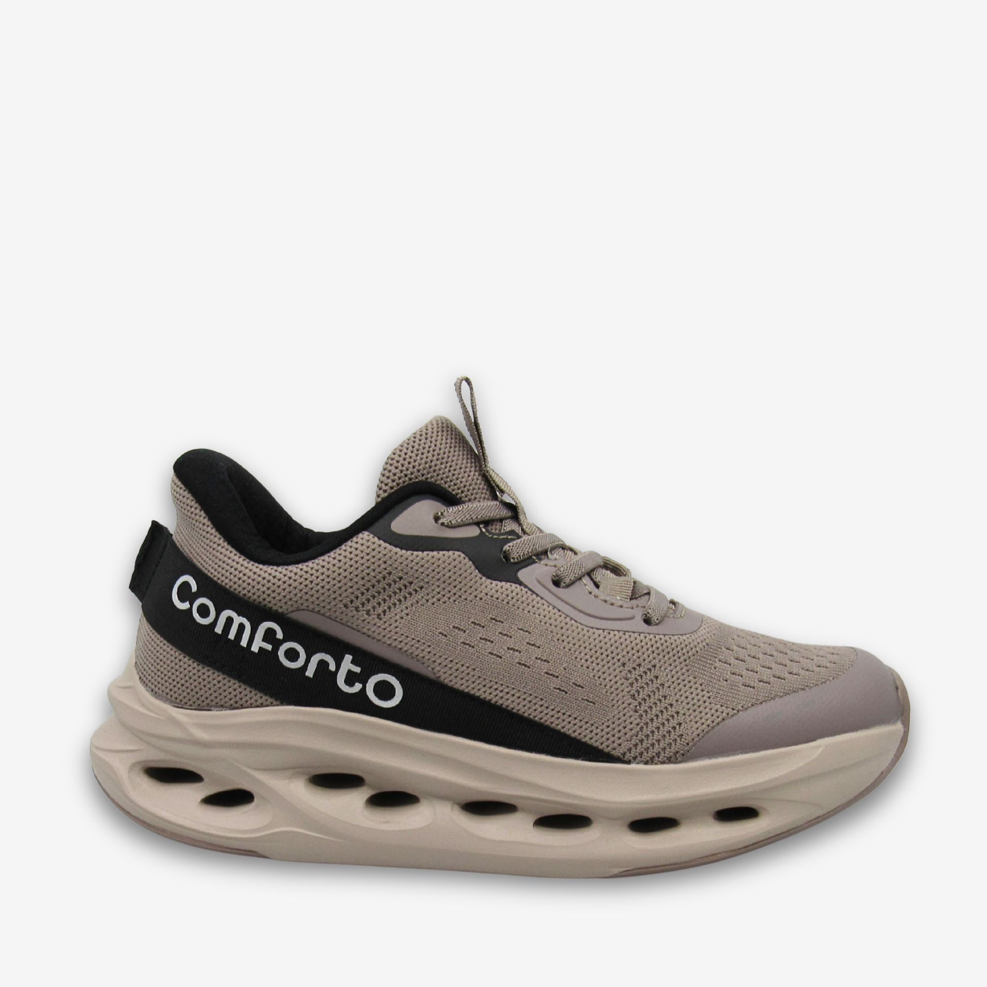 صُممت هذه الأحذية الرياضية من كومفورتو لتمنحك حرية الحركة والأناقة العصرية، فهي تتميز بجزء علوي شبكي يسمح بالتهوية ونعل مصمم بشكل انسيابي مع بطانة داخلية لتوفير دعم خفيف الوزن. يضمن تصميمها برباط ثباتًا محكمًا، بينما يحافظ تصميمها المريح على راحتك في كل خطوة، سواء كنت تتحرك أو تتنقل.